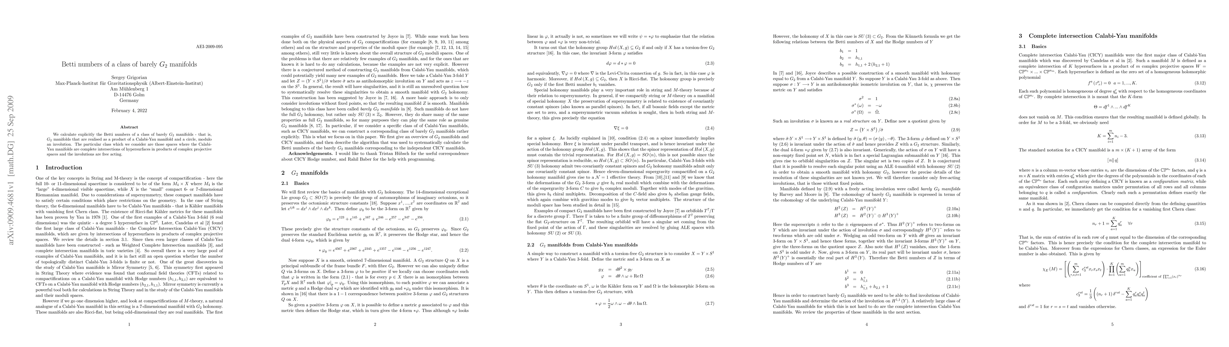 We calculate explicitly the Betti numbers of a class of barely G2 manifolds - that is, G2 manifolds that are realised as a product of a Calabi-Yau manifold and a circle, modulo an involution. The particular class which we consider are those spaces where the Calabi-Yau manifolds are complete intersections of hypersurfaces in products of complex projective spaces and the involutions are free acting.