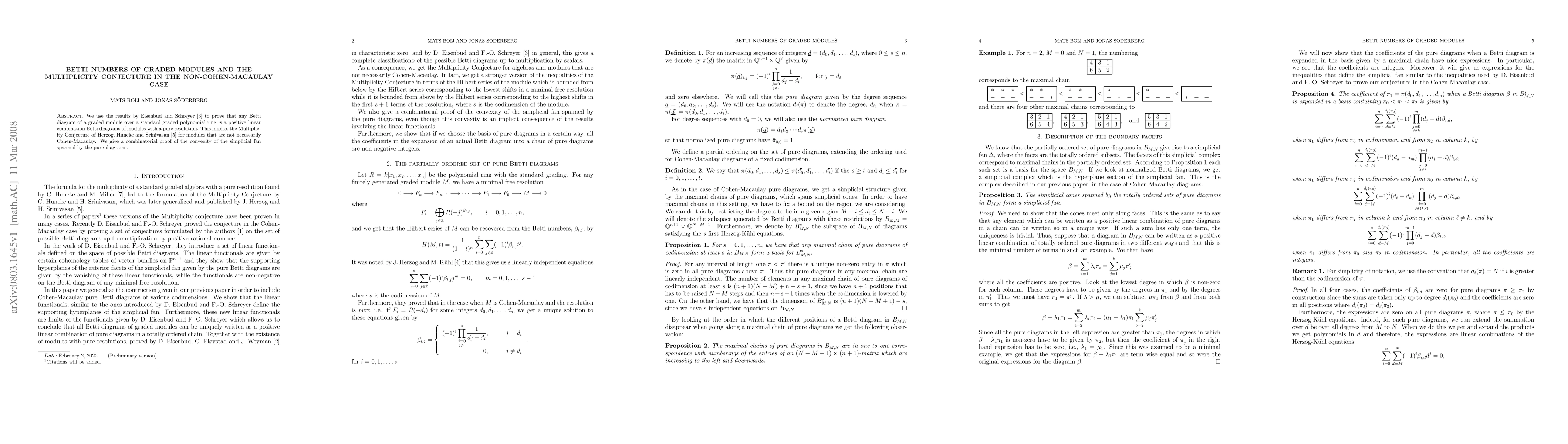 Summary: This paper proves that Betti diagrams of graded modules over standard graded polynomial rings are positive linear combinations of Betti diagrams of modules with pure resolutions, thereby supporting the Multiplicity Conjecture for non-Cohen-Macaulay modules, and provides a combinatorial proof for the convexity of the simplicial fan formed by these pure diagrams.