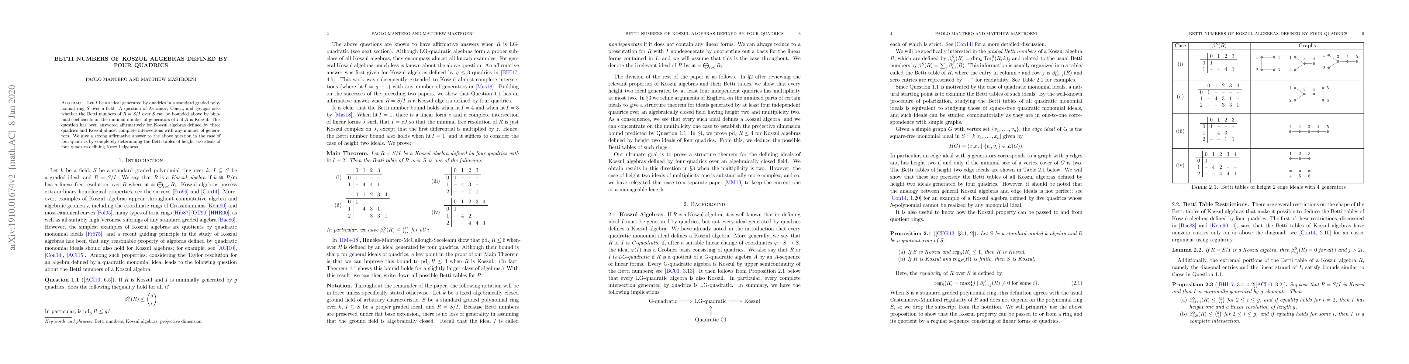 This paper addresses the question of whether Betti numbers of Koszul algebras defined by four quadrics can be bounded by binomial coefficients based on the number of generators. It provides a definitive answer by fully determining the Betti tables for such algebras.