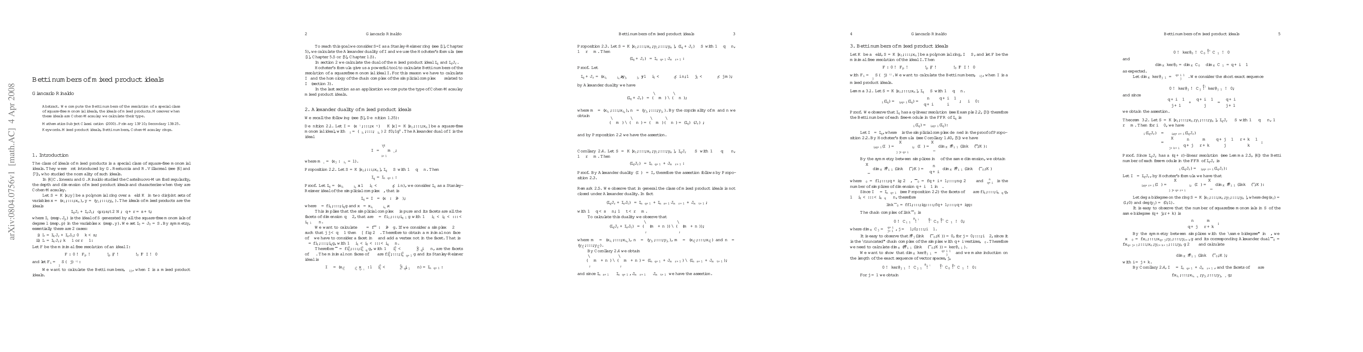 We compute the Betti numbers of the resolution of a special class of square-free monomial ideals, the ideals of mixed products. Moreover when these ideals are Cohen-Macaulay we calculate their type.