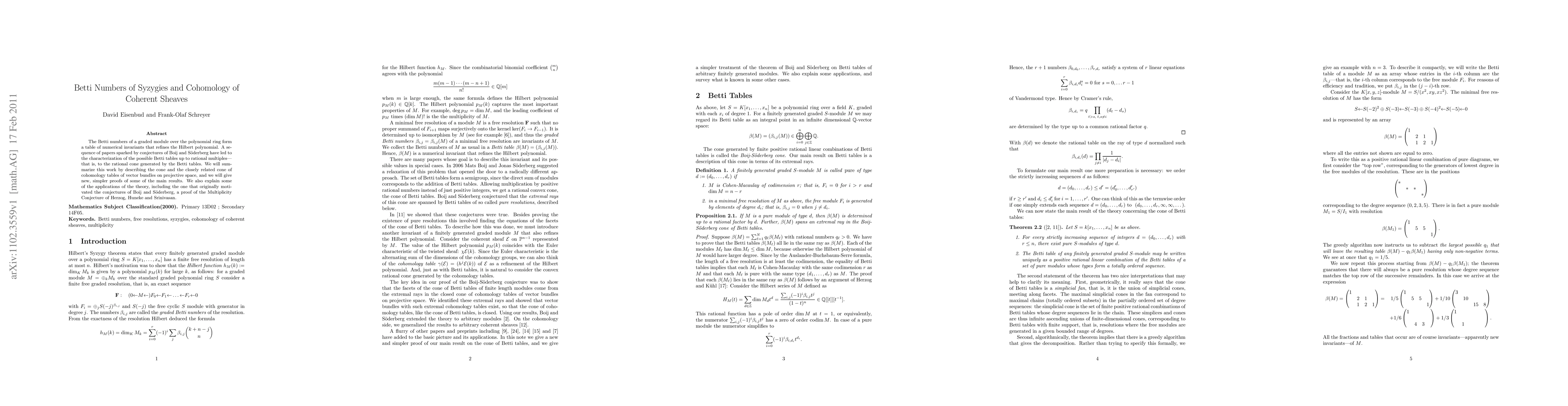 The Betti numbers of a graded module over the polynomial ring form a table of numerical invariants that refines the Hilbert polynomial. A sequence of papers sparked by conjectures of Boij and S\"oderberg have led to the characterization of the possible Betti tables up to rational multiples---that is, to the rational cone generated by the Betti tables. We will summarize this work by describing the cone and the closely related cone of cohomology tables of vector bundles on projective space, and we will give new, simpler proofs of some of the main results. We also explain some of the applications of the theory, including the one that originally motivated the conjectures of Boij and S\"oderberg, a proof of the Multiplicity Conjecture of Herzog, Huneke and Srinivasan.