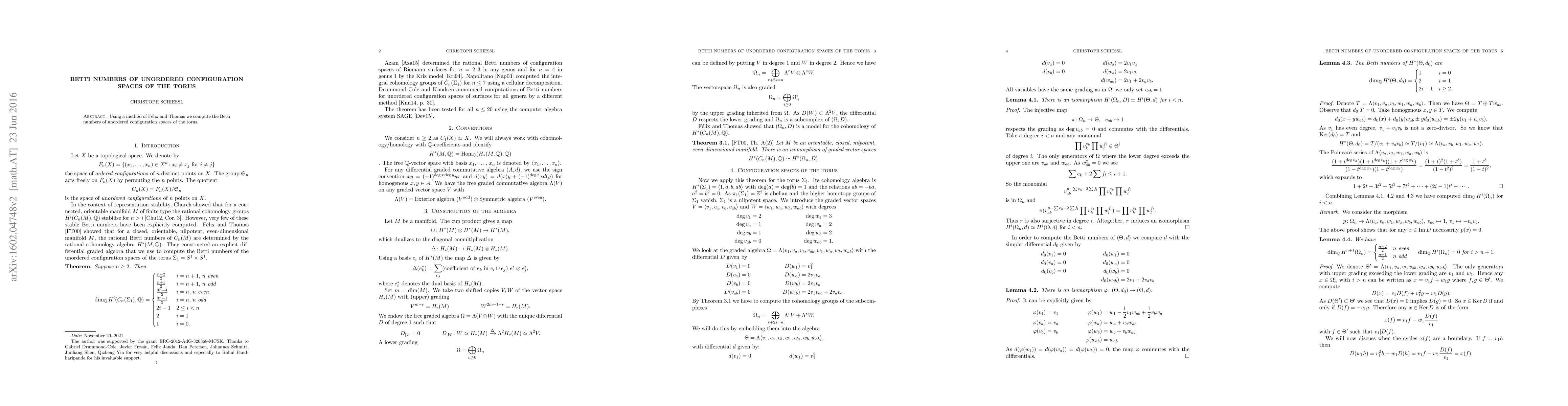 Summary: This paper computes the Betti numbers of unordered configuration spaces of the torus using the method developed by F\'elix and Thomas, providing insights into the topological structure of these spaces. The results contribute to the understanding of the combinatorial topology of such configurations.