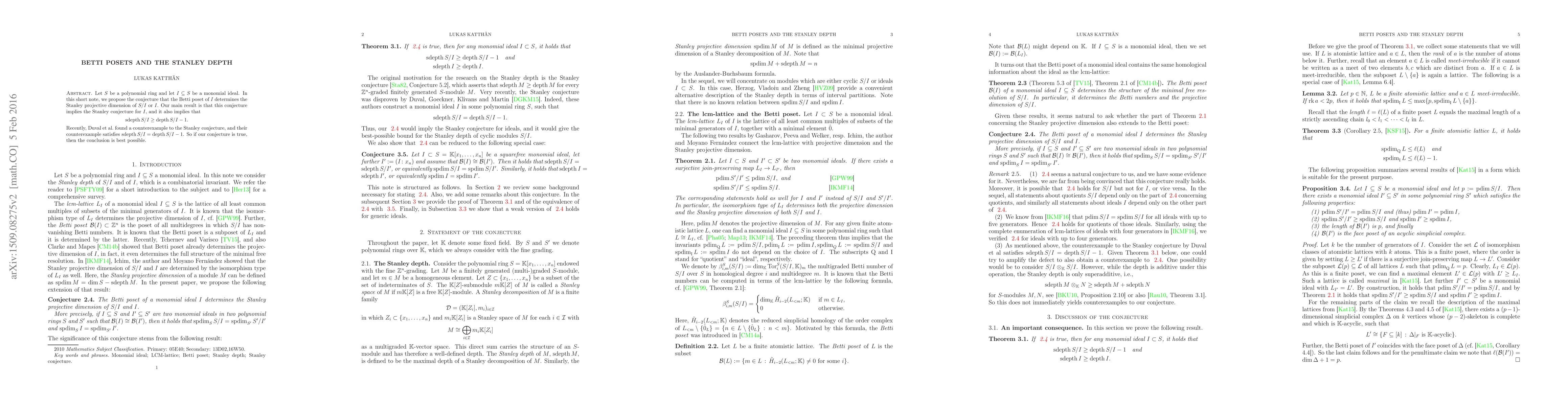 Let $S$ be a polynomial ring and let $I \subseteq S$ be a monomial ideal. In this short note, we propose the conjecture that the Betti poset of $I$ determines the Stanley projective dimension of $S/I$ or $I$. Our main result is that this conjecture implies the Stanley conjecture for $I$, and it also implies that \[ \operatorname{sdepth} S/I \geq \operatorname{depth} S/I - 1.\] Recently, Duval et al. found a counterexample to the Stanley conjecture, and their counterexample satisfies $\operatorname{sdepth} S/I = \operatorname{depth} S/I - 1$. So if our conjecture is true, then the conclusion is best possible.