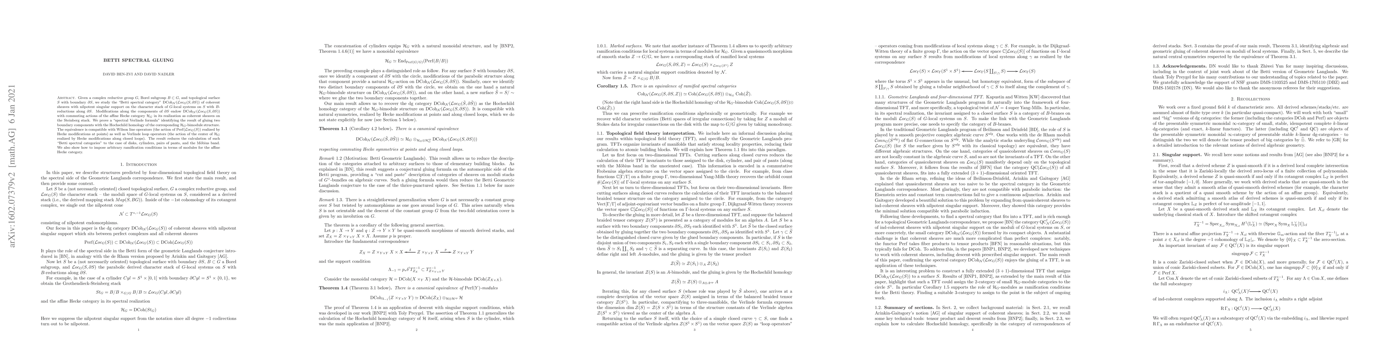 This paper explores the Betti spectral category of coherent sheaves on the character stack of reductive group G-local systems on a surface S, revealing a spectral Verlinde formula for gluing boundary components. The result simplifies calculations to basic geometric configurations and aligns with actions from affine Hecke categories.