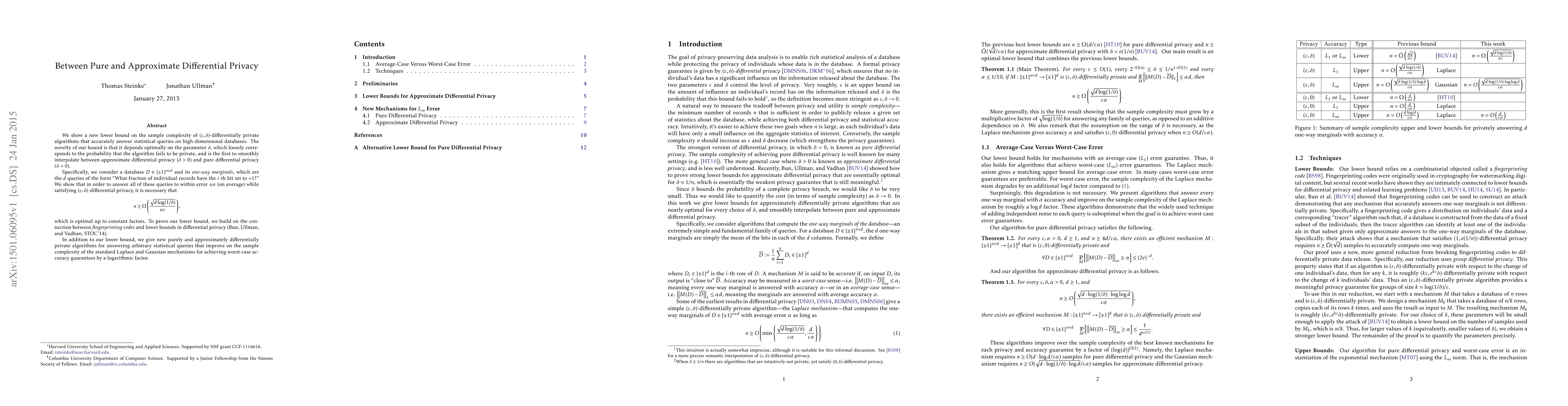 We show a new lower bound on the sample complexity of $(\varepsilon, \delta)$-differentially private algorithms that accurately answer statistical queries on high-dimensional databases. The novelty of our bound is that it depends optimally on the parameter $\delta$, which loosely corresponds to the probability that the algorithm fails to be private, and is the first to smoothly interpolate between approximate differential privacy ($\delta > 0$) and pure differential privacy ($\delta = 0$). Specifically, we consider a database $D \in \{\pm1\}^{n \times d}$ and its \emph{one-way marginals}, which are the $d$ queries of the form "What fraction of individual records have the $i$-th bit set to $+1$?" We show that in order to answer all of these queries to within error $\pm \alpha$ (on average) while satisfying $(\varepsilon, \delta)$-differential privacy, it is necessary that $$ n \geq \Omega\left( \frac{\sqrt{d \log(1/\delta)}}{\alpha \varepsilon} \right), $$ which is optimal up to constant factors. To prove our lower bound, we build on the connection between \emph{fingerprinting codes} and lower bounds in differential privacy (Bun, Ullman, and Vadhan, STOC'14). In addition to our lower bound, we give new purely and approximately differentially private algorithms for answering arbitrary statistical queries that improve on the sample complexity of the standard Laplace and Gaussian mechanisms for achieving worst-case accuracy guarantees by a logarithmic factor.