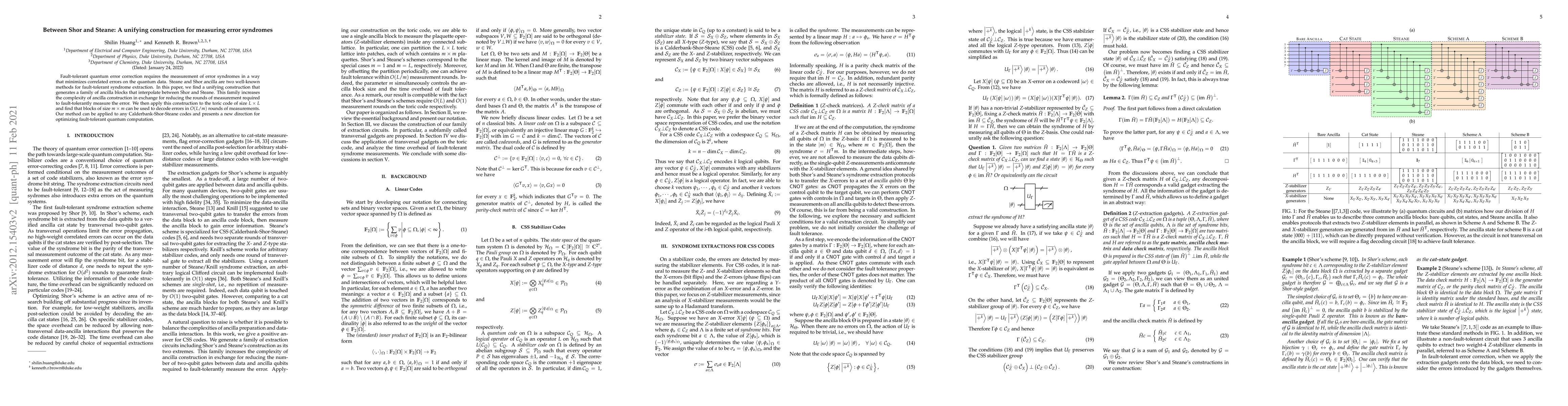 Fault-tolerant quantum error correction requires the measurement of error syndromes in a way that minimizes correlated errors on the quantum data. Steane and Shor ancilla are two well-known methods for fault-tolerant syndrome extraction. In this paper, we find a unifying construction that generates a family of ancilla blocks that interpolate between Shor and Steane. This family increases the complexity of ancilla construction in exchange for reducing the rounds of measurement required to fault-tolerantly measure the error. We then apply this construction to the toric code of size $L\times L$ and find that blocks of size $m\times m$ can be used to decode errors in $O(L/m)$ rounds of measurements. Our method can be applied to any Calderbank-Shor-Steane codes and presents a new direction for optimizing fault-tolerant quantum computation.