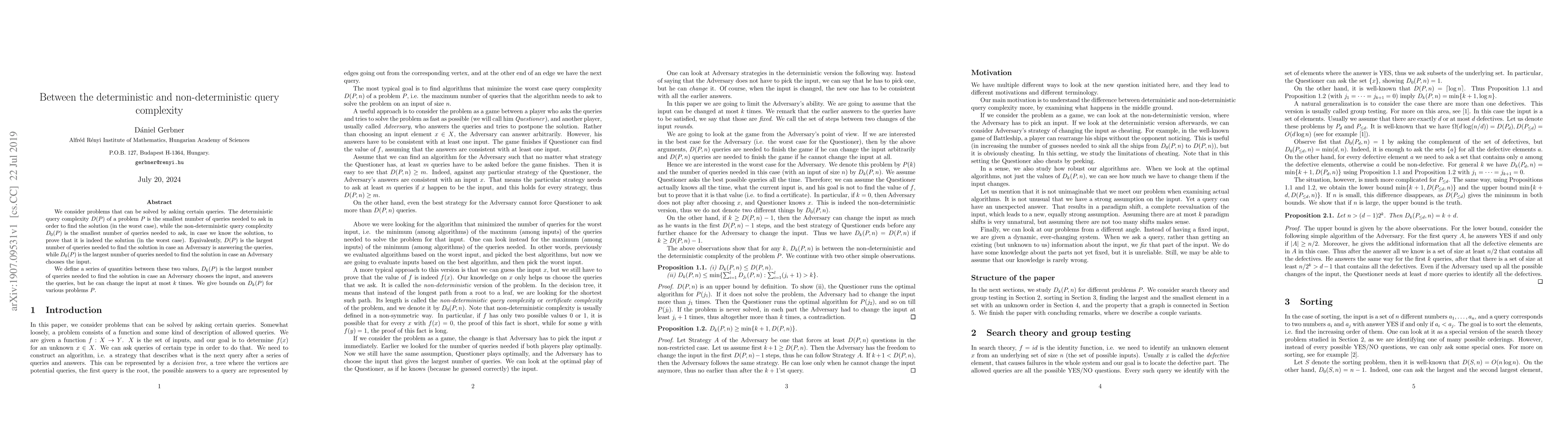 A study explores query complexity in problems solved through querying, finding bounds on a series of quantities that fall between deterministic and non-deterministic complexities.