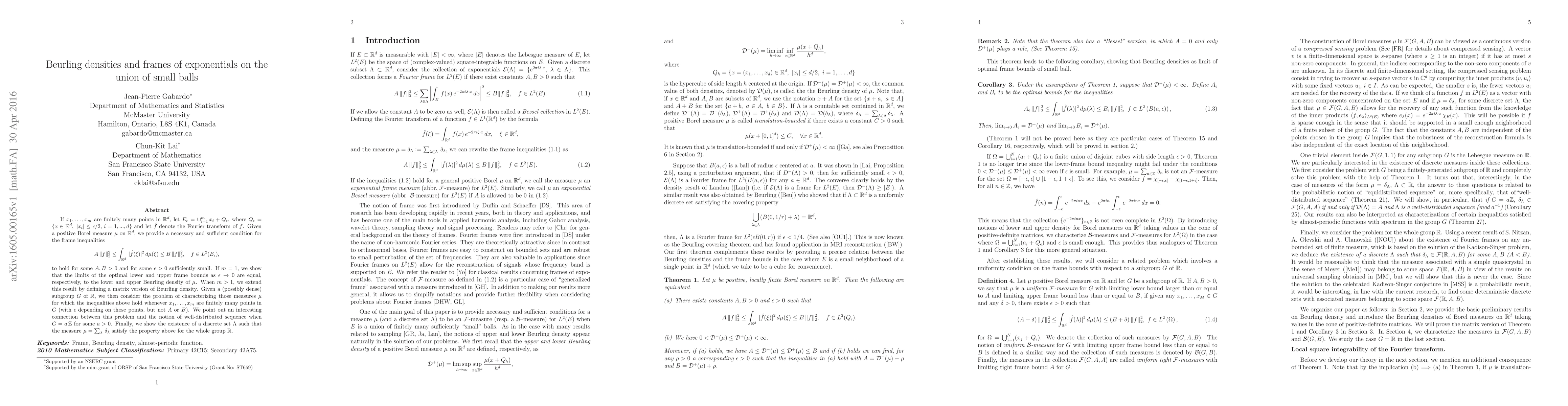 If $x_1,\dots,x_m$ are finitely many points in $\mathbb{R}^d$, let $E_\epsilon=\cup_{i=1}^m\,x_i+Q_\epsilon$, where $Q_\epsilon=\{x\in \mathbb{R}^d,\,\,|x_i|\le \epsilon/2, \, i=1,...,d\}$ and let $\hat f$ denote the Fourier transform of $f$. Given a positive Borel measure $\mu$ on $\mathbb{R}^d$, we provide a necessary and sufficient condition for the frame inequalities $$ A\,\|f\|^2_2\le \int_{\mathbb{R}^d}\,|\hat f(\xi)|^2\,d\mu(\xi)\le B\,\|f\|^2_2,\quad f\in L^2(E_\epsilon), $$ to hold for some $A,B>0$ and for some $\epsilon>0$ sufficiently small. If $m=1$, we show that the limits of the optimal lower and upper frame bounds as $\epsilon\rightarrow 0$ are equal, respectively, to the lower and upper Beurling density of $\mu$. When $m>1$, we extend this result by defining a matrix version of Beurling density. Given a (possibly dense) subgroup $G$ of $\mathbb{R}$, we then consider the problem of characterizing those measures $\mu$ for which the inequalities above hold whenever $x_1,\dots,x_m$ are finitely many points in $G$ (with $\epsilon$ depending on those points, but not $A$ or $B$). We point out an interesting connection between this problem and the notion of well-distributed sequence when $G=a\,\mathbb{Z}$ for some $a>0$. Finally, we show the existence of a discrete set $\Lambda$ such that the measure $\mu=\sum_{\lambda}\,\delta_\lambda$ satisfy the property above for the whole group $\mathbb{R}$.