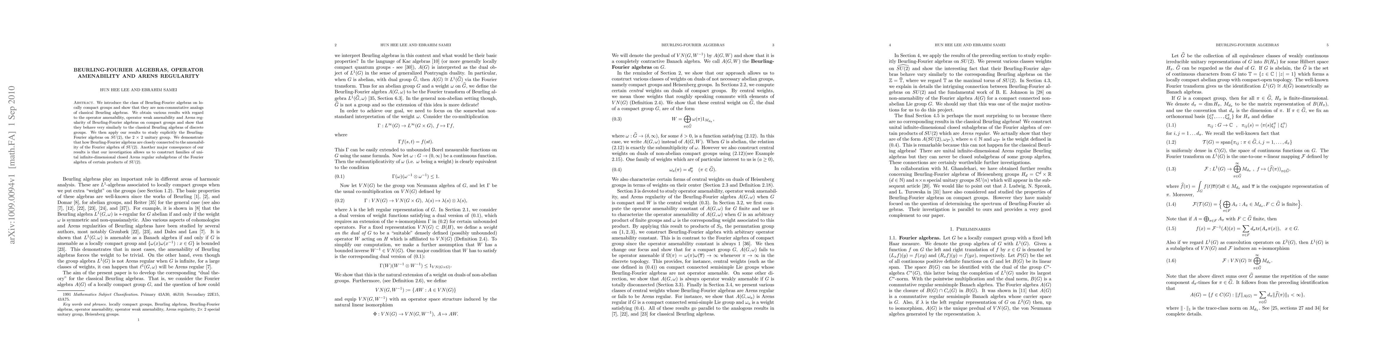 This paper introduces Beurling-Fourier algebras on locally compact groups, establishing their operator amenability and Arens regularity. It demonstrates their similarity to classical Beurling algebras and applies these findings to study SU(2) and construct infinite-dimensional Arens regular subalgebras in the Fourier algebra of SU(2) products.