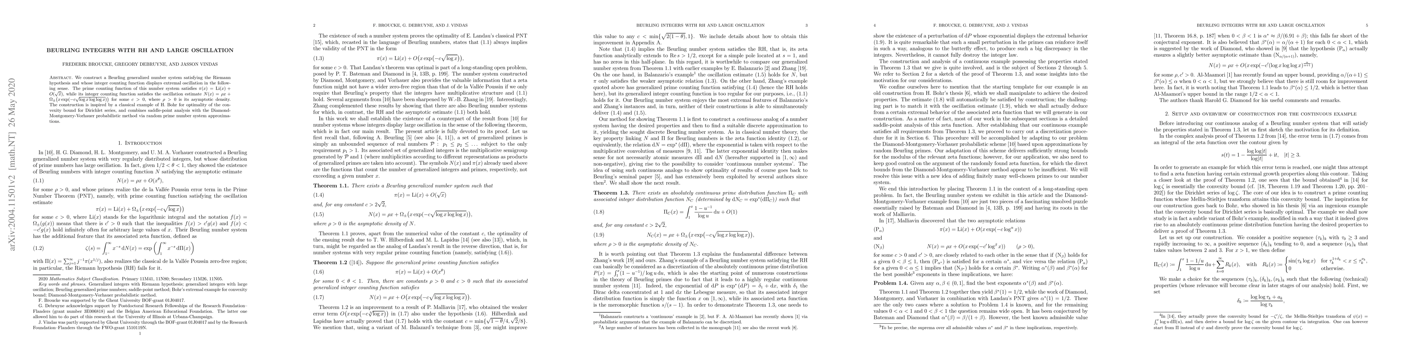 The research constructs a Beurling generalized number system satisfying the Riemann Hypothesis (RH) with extremal oscillation in its integer counting function, combining saddle-point analysis with the Diamond-Montgomery-Vorhauer probabilistic method.