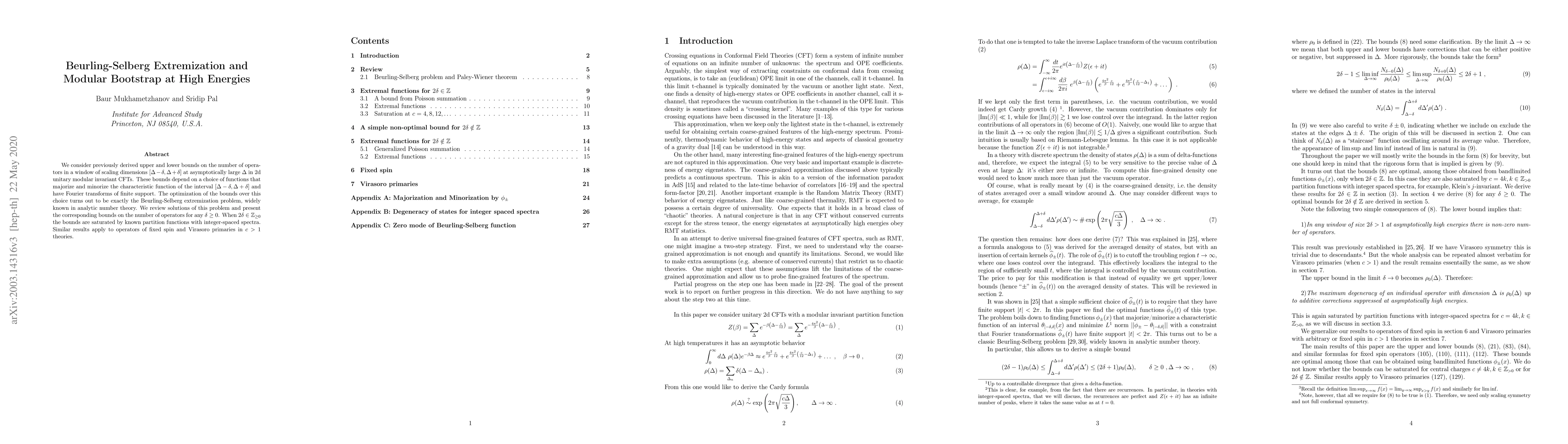 Researchers solved the Beurling-Selberg extremization problem to set bounds on the number of operators in 2D CFTs at high energies, revealing new insights into modular invariance and partition functions.
