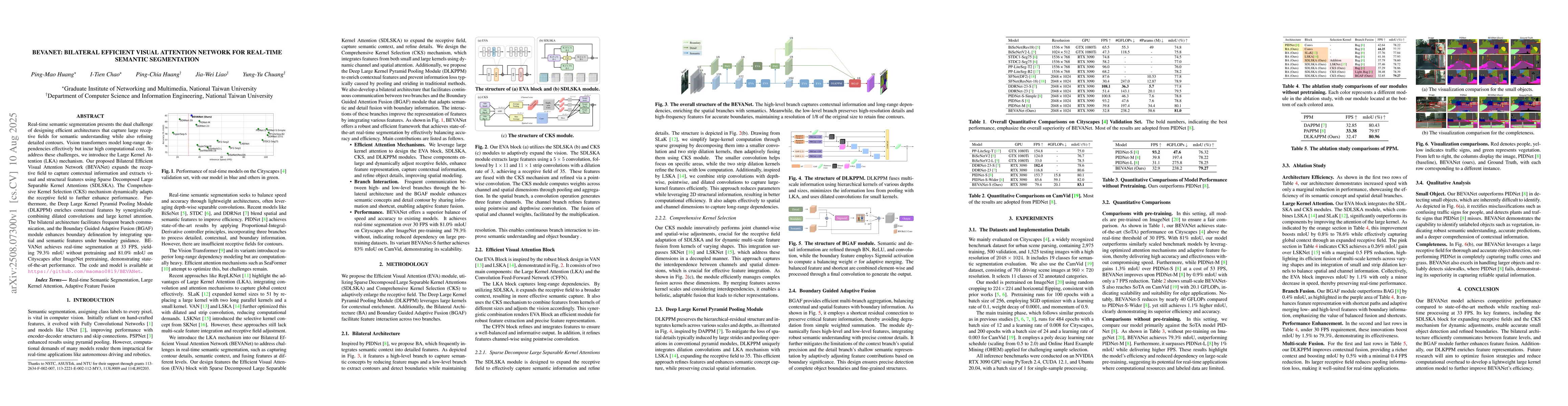 Real-time semantic segmentation presents the dual challenge of designing efficient architectures that capture large receptive fields for semantic understanding while also refining detailed contours. Vision transformers model long-range dependencies effectively but incur high computational cost. To address these challenges, we introduce the Large Kernel Attention (LKA) mechanism. Our proposed Bilateral Efficient Visual Attention Network (BEVANet) expands the receptive field to capture contextual information and extracts visual and structural features using Sparse Decomposed Large Separable Kernel Attentions (SDLSKA). The Comprehensive Kernel Selection (CKS) mechanism dynamically adapts the receptive field to further enhance performance. Furthermore, the Deep Large Kernel Pyramid Pooling Module (DLKPPM) enriches contextual features by synergistically combining dilated convolutions and large kernel attention. The bilateral architecture facilitates frequent branch communication, and the Boundary Guided Adaptive Fusion (BGAF) module enhances boundary delineation by integrating spatial and semantic features under boundary guidance. BEVANet achieves real-time segmentation at 33 FPS, yielding 79.3% mIoU without pretraining and 81.0% mIoU on Cityscapes after ImageNet pretraining, demonstrating state-of-the-art performance. The code and model is available at https://github.com/maomao0819/BEVANet.