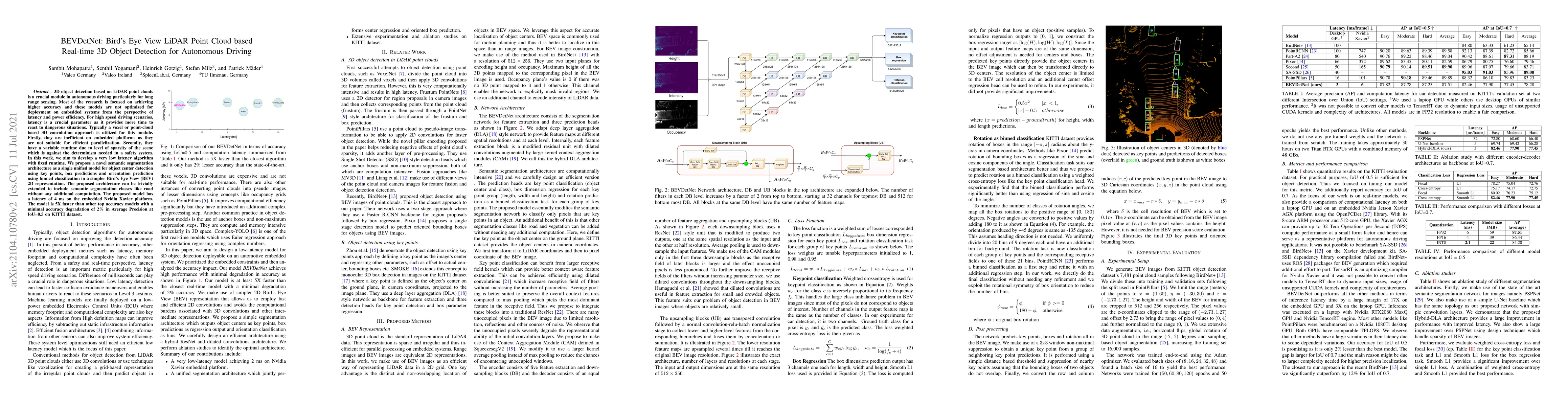 The paper introduces BEVDetNet, a novel LiDAR point cloud-based 3D object detection system for autonomous driving, focusing on low latency and power efficiency. The proposed model achieves a fixed runtime of 4 ms with minimal accuracy loss, outperforming other high-accuracy models by a factor of 5.