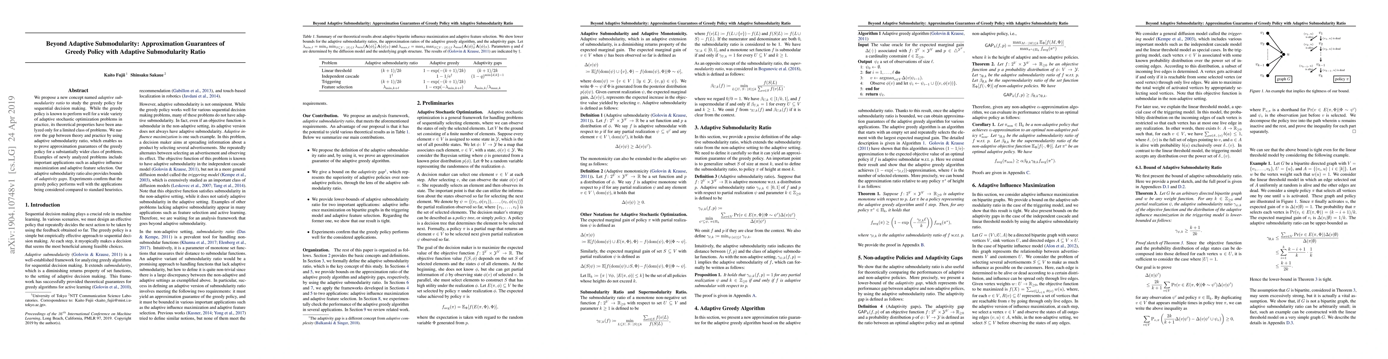 This paper introduces a new concept called adaptive submodularity ratio to enhance the theoretical analysis of greedy policies in sequential decision making. It provides approximation guarantees for a broader range of problems, including adaptive influence maximization and feature selection, and demonstrates the effectiveness of the greedy policy through experiments.