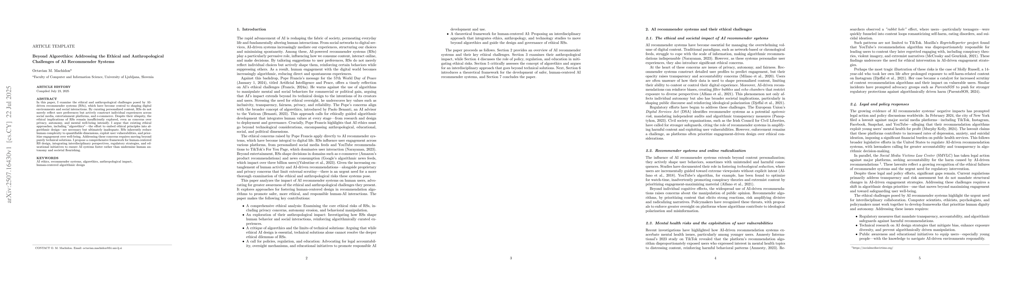In this paper, I examine the ethical and anthropological challenges posed by AI-driven recommender systems (RSs), which have become central to shaping digital environments and social interactions. By curating personalized content, RSs do not merely reflect user preferences but actively construct individual experiences across social media, entertainment platforms, and e-commerce. Despite their ubiquity, the ethical implications of RSs remain insufficiently explored, even as concerns over privacy, autonomy, and mental well-being intensify. I argue that existing ethical approaches, including algorethics, the effort to embed ethical principles into algorithmic design, are necessary but ultimately inadequate. RSs inherently reduce human complexity to quantifiable dimensions, exploit user vulnerabilities, and prioritize engagement over well-being. Addressing these concerns requires moving beyond purely technical solutions. I propose a comprehensive framework for human-centered RS design, integrating interdisciplinary perspectives, regulatory strategies, and educational initiatives to ensure AI systems foster rather than undermine human autonomy and societal flourishing.