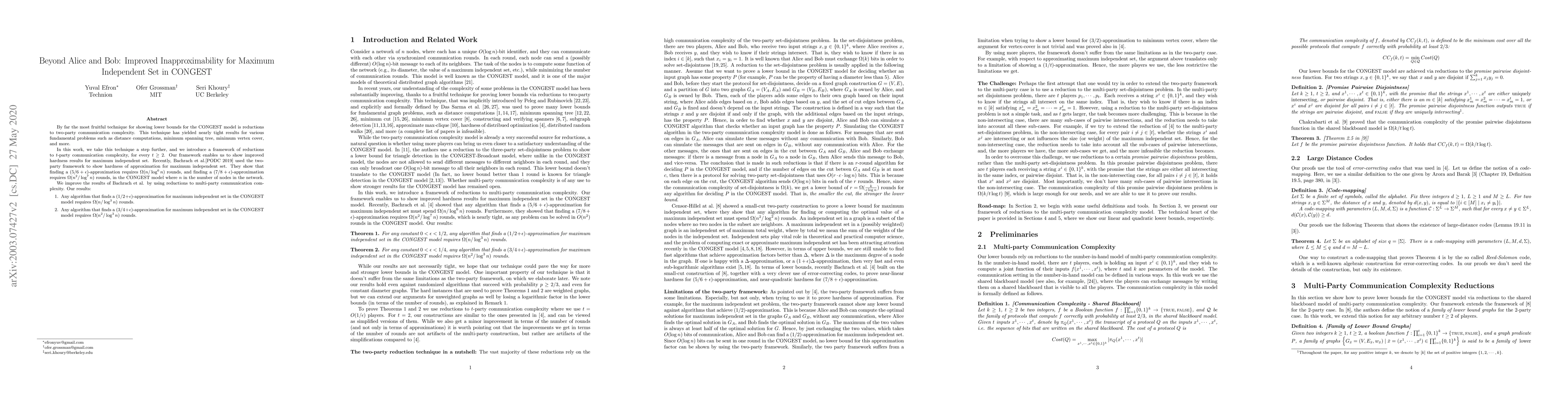 By far the most fruitful technique for showing lower bounds for the CONGEST model is reductions to two-party communication complexity. This technique has yielded nearly tight results for various fundamental problems such as distance computations, minimum spanning tree, minimum vertex cover, and more. In this work, we take this technique a step further, and we introduce a framework of reductions to $t$-party communication complexity, for every $t\geq 2$. Our framework enables us to show improved hardness results for maximum independent set. Recently, Bachrach et al.[PODC 2019] used the two-party framework to show hardness of approximation for maximum independent set. They show that finding a $(5/6+\epsilon)$-approximation requires $\Omega(n/\log^6 n)$ rounds, and finding a $(7/8+\epsilon)$-approximation requires $\Omega(n^2/\log^7 n)$ rounds, in the CONGEST model where $n$ in the number of nodes in the network. We improve the results of Bachrach et al. by using reductions to multi-party communication complexity. Our results: (1) Any algorithm that finds a $(1/2+\epsilon)$-approximation for maximum independent set in the CONGEST model requires $\Omega(n/\log^3 n)$ rounds. (2) Any algorithm that finds a $(3/4+\epsilon)$-approximation for maximum independent set in the CONGEST model requires $\Omega(n^2/\log^3 n)$ rounds.