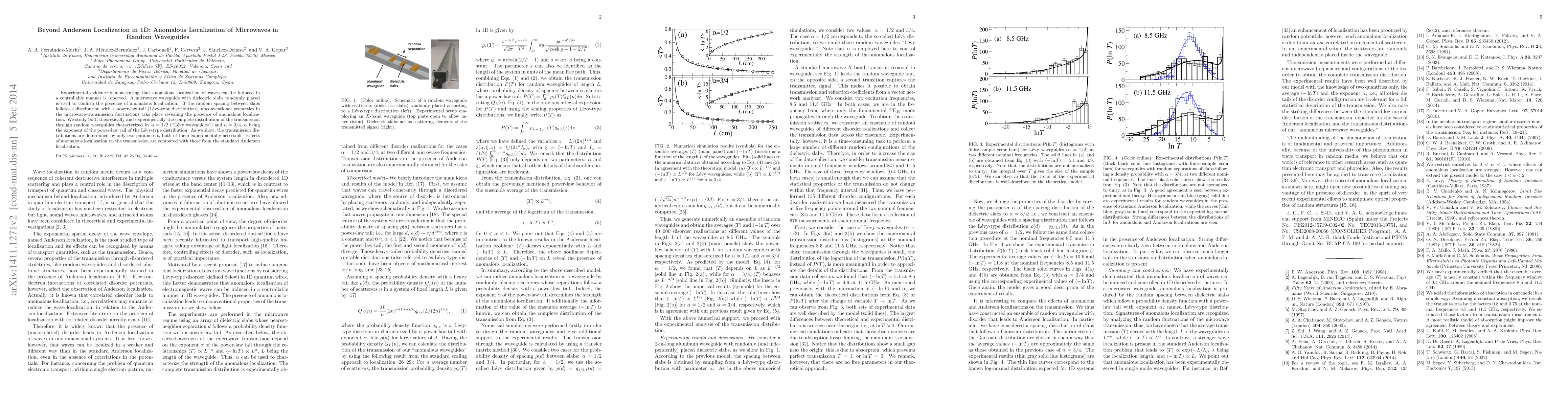 Experimental evidence demonstrating that anomalous localization of waves can be induced in a controllable manner is reported. A microwave waveguide with dielectric slabs randomly placed is used to confirm the presence of anomalous localization. If the random spacing between slabs follows a distribution with a power-law tail (L\'evy-type distribution), unconventional properties in the microwave-transmission fluctuations take place revealing the presence of anomalous localization. We study both theoretically and experimentally the complete distribution of the transmission through random waveguides characterized by $\alpha=1/2$ ("L\'evy waveguides") and $\alpha=3/4$, $\alpha$ being the exponent of the power-law tail of the L\'evy-type distribution. As we show, the transmission distributions are determined by only two parameters, both of them experimentally accessible. Effects of anomalous localization on the transmission are compared with those from the standard Anderson localization.