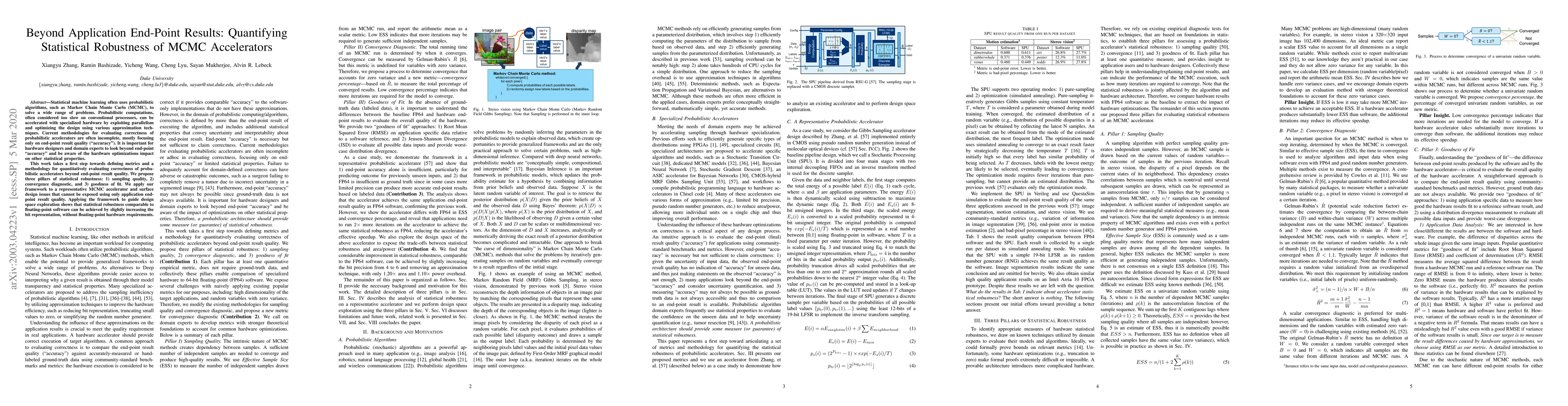 This paper proposes a new framework to evaluate statistical robustness of probabilistic accelerators beyond accuracy, focusing on sampling quality, convergence diagnostic, and goodness of fit, with potential implications for improving design and achieving performance comparable to floating-point software.