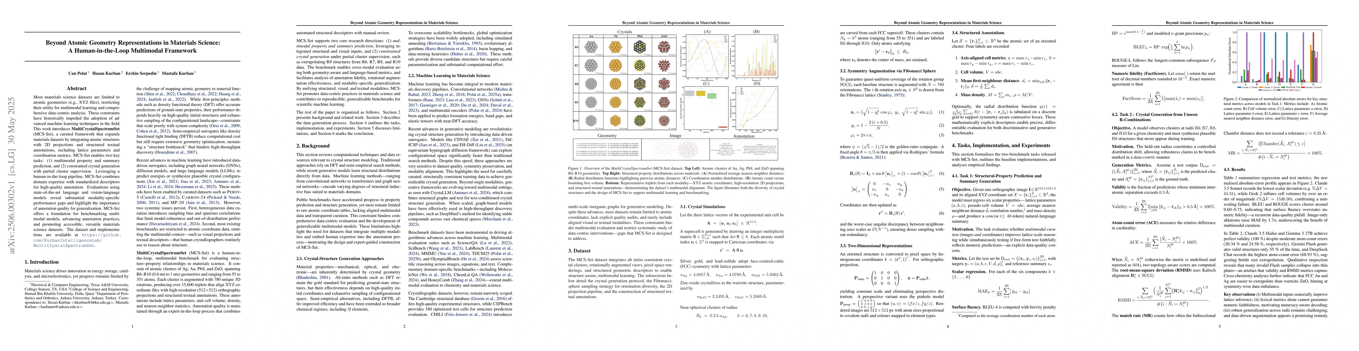 This work stands out by expanding materials datasets beyond atomic geometries, incorporating 2D projections and structured textual annotations, and establishing a human-in-the-loop framework for comprehensive data-centric analysis in materials science.