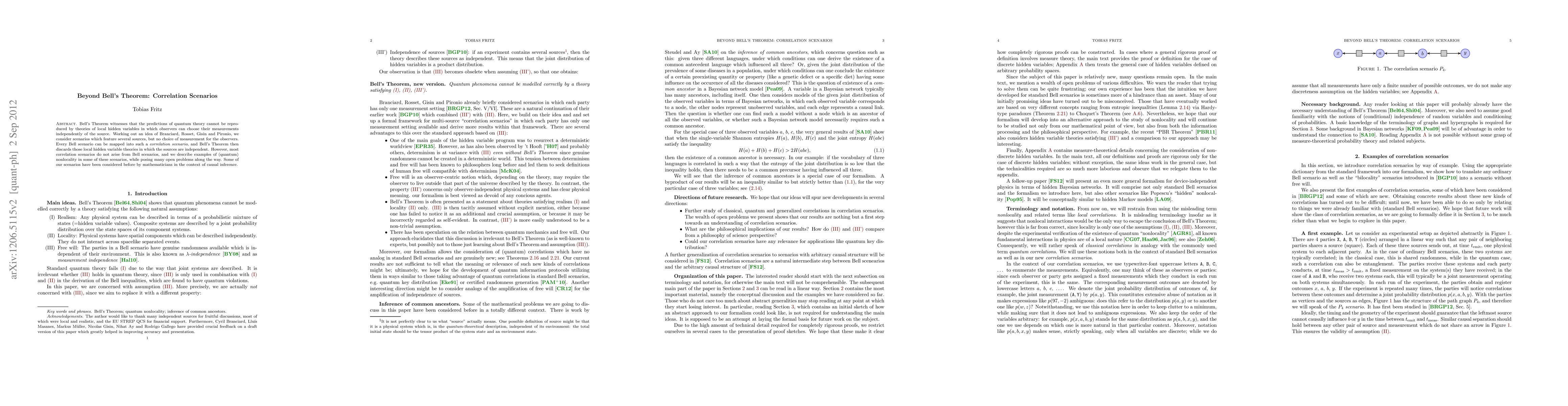 This paper explores scenarios beyond Bell's Theorem where observers cannot choose their measurements, highlighting that while Bell's Theorem rules out local hidden variable theories with independent sources, many nonlocal quantum correlations arise in these new scenarios, posing several open questions and connections with causal inference.