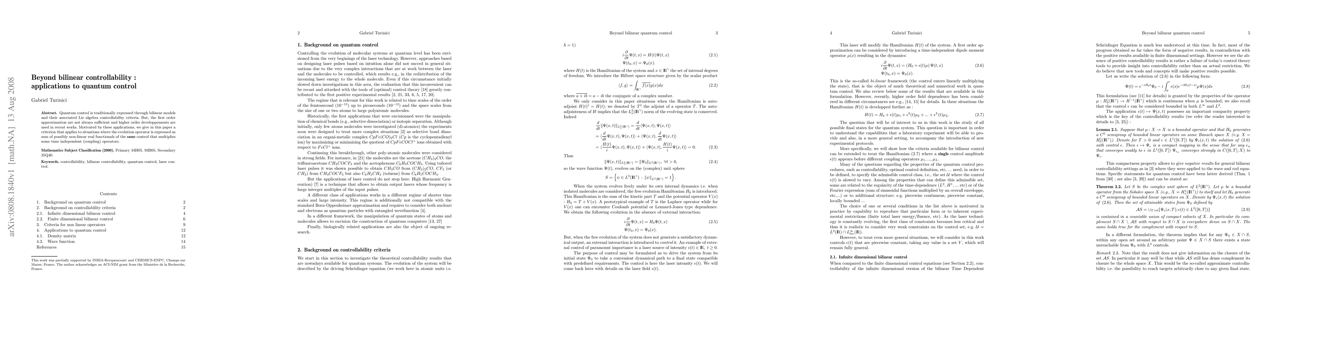 This paper proposes a new criterion for quantum control beyond bilinear models, addressing situations where the evolution operator involves non-linear functionals of the control, enhancing controllability beyond first-order approximations.