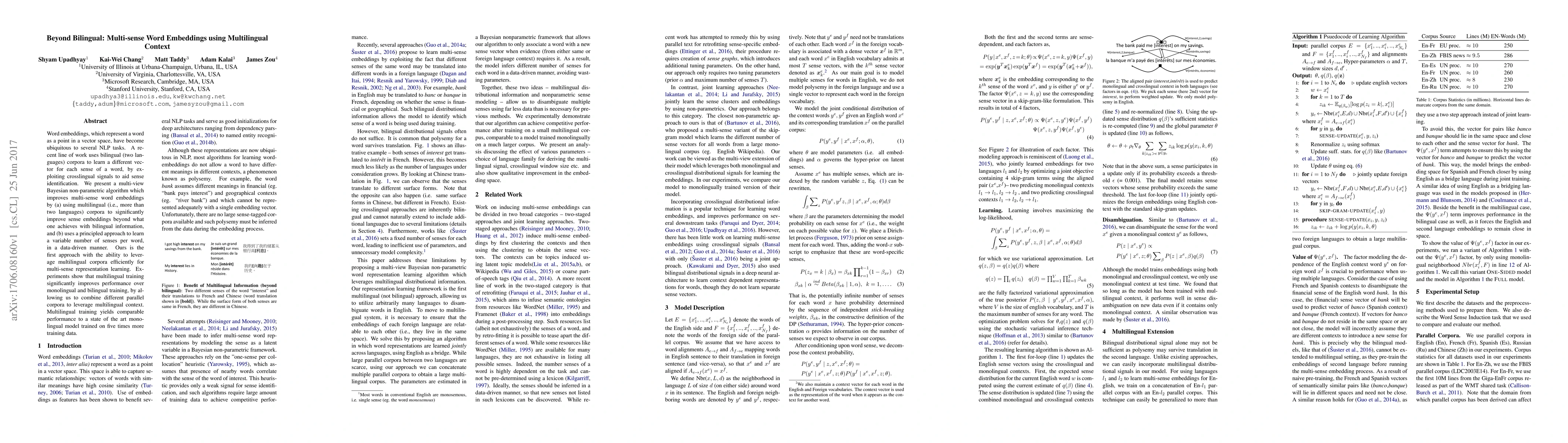 This paper introduces a novel Bayesian non-parametric algorithm that enhances multi-sense word embeddings by leveraging multilingual corpora, significantly outperforming bilingual and monolingual approaches. The method efficiently combines parallel corpora to utilize multilingual context, achieving comparable results to a state-of-the-art monolingual model trained on five times more data.