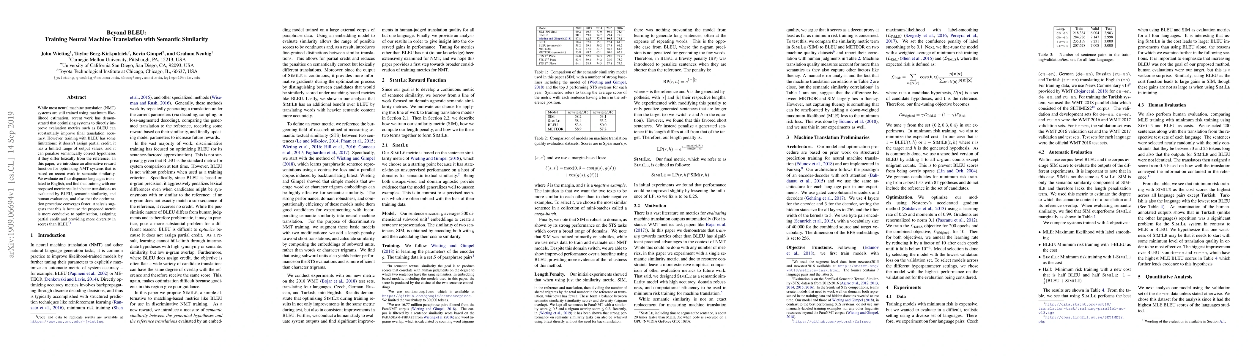A new approach to training neural machine translation systems using semantic similarity improves translation accuracy and convergence speed compared to traditional BLEU-based methods.
