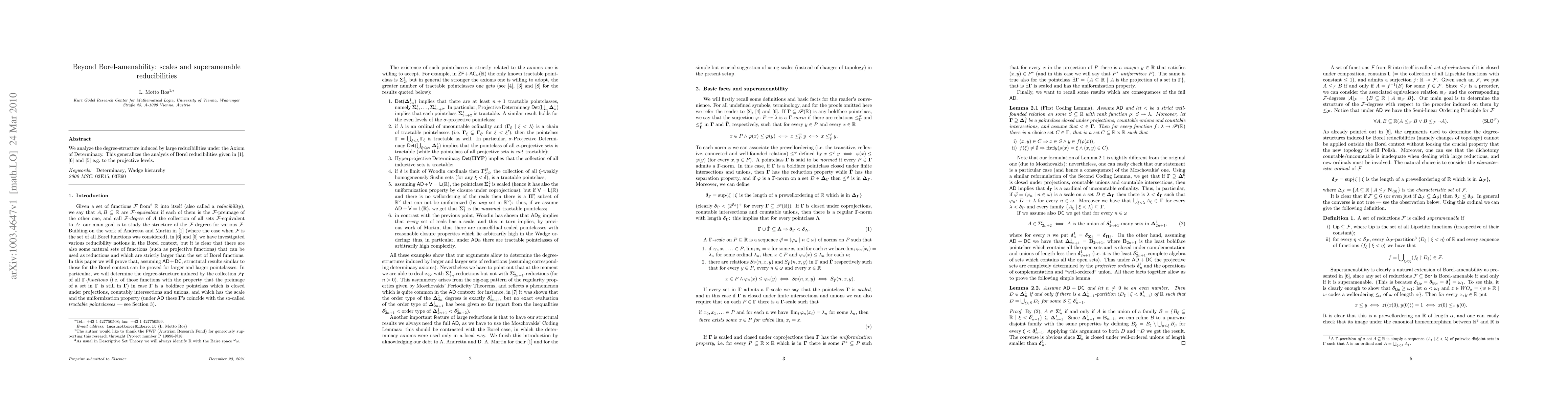 This paper explores the degree-structure of large reducibilities under the Axiom of Determinacy, extending beyond Borel-amenability to include projective levels, thereby generalizing previous analyses of Borel reducibilities.