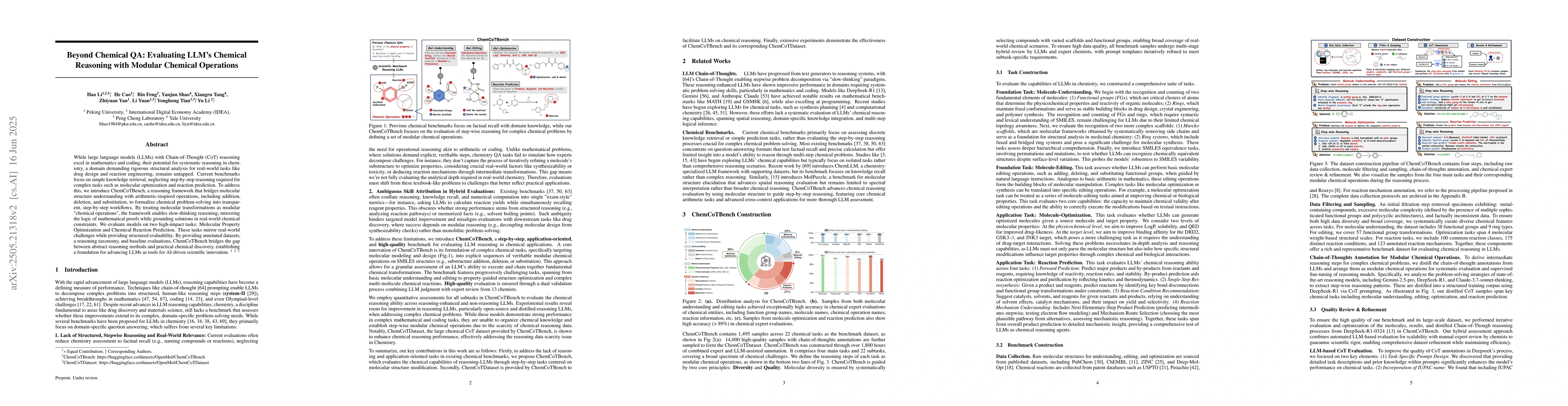 Large language models can excel in simple chemistry tasks but struggle with complex reasoning; a new framework called ChemCoTBench provides annotated datasets and methods to evaluate their performance on molecular optimization and reaction prediction tasks.