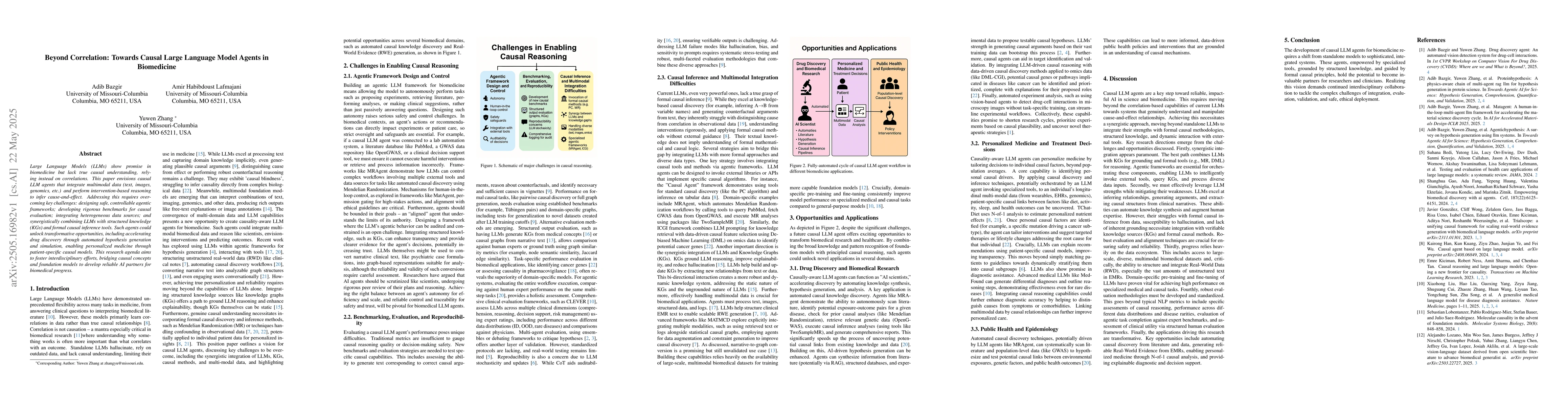 The paper proposes a framework for causal LLM agents in biomedicine, integrating diverse data types and employing intervention-based reasoning.