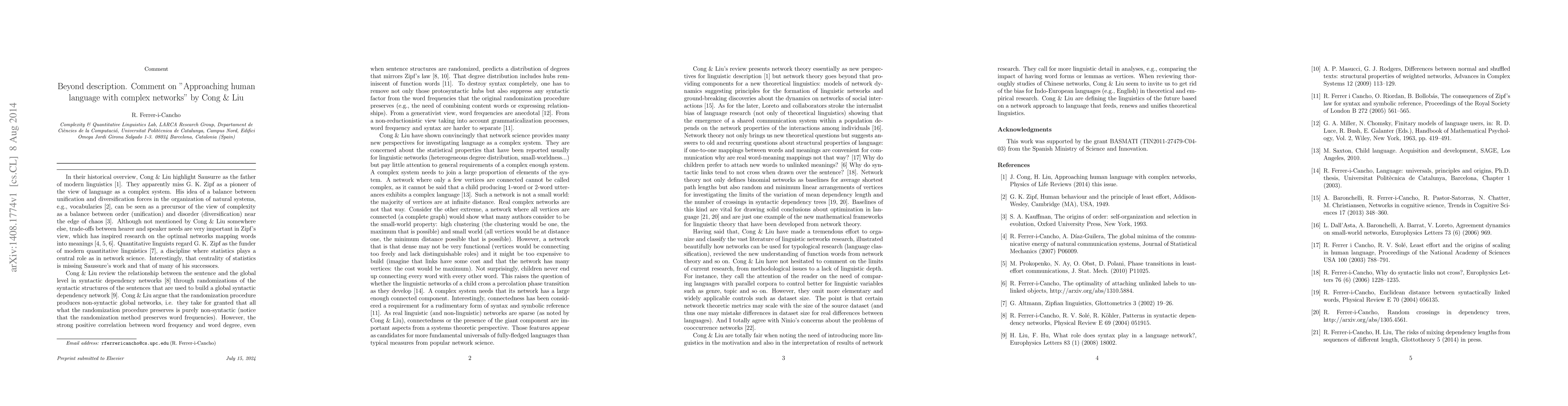 Comment on "Approaching human language with complex networks" by Cong & Liu