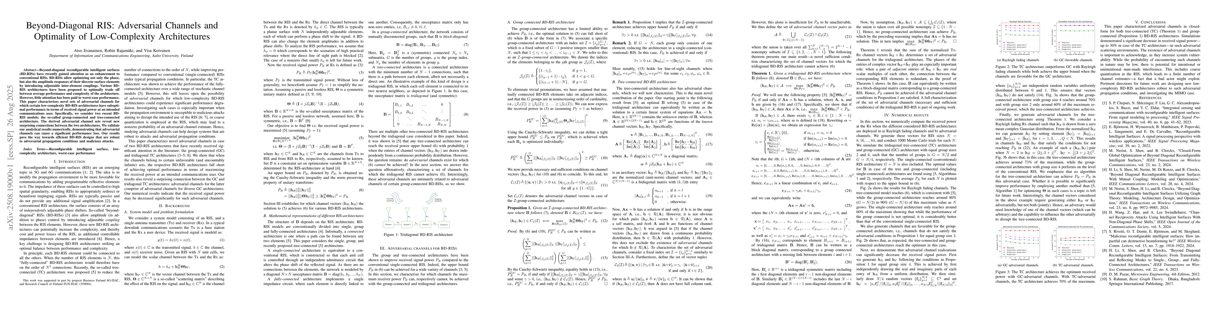 Beyond-diagonal reconfigurable intelligent surfaces (BD-RISs) have recently gained attention as an enhancement to conventional RISs. BD-RISs allow optimizing not only the phase, but also the amplitude responses of their discrete surface elements by introducing adjustable inter-element couplings. Various BD-RIS architectures have been proposed to optimally trade off between average performance and complexity of the architecture. However, little attention has been paid to worst-case performance. This paper characterizes novel sets of adversarial channels for which certain low-complexity BD-RIS architectures have suboptimal performance in terms of received signal power at an intended communications user. Specifically, we consider two recent BD-RIS models: the so-called group-connected and tree-connected architecture. The derived adversarial channel sets reveal new surprising connections between the two architectures. We validate our analytical results numerically, demonstrating that adversarial channels can cause a significant performance loss. Our results pave the way towards efficient BD-RIS designs that are robust to adversarial propagation conditions and malicious attacks.