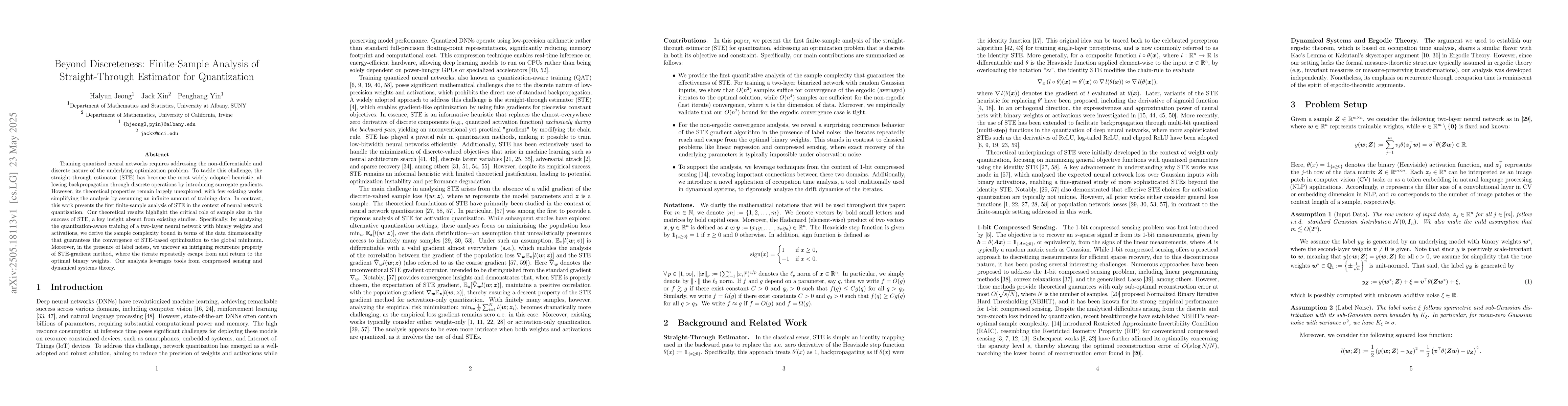 The paper provides a novel finite-sample analysis of the straight-through estimator for quantized neural networks, deriving a sample complexity bound for convergence to the global minimum.