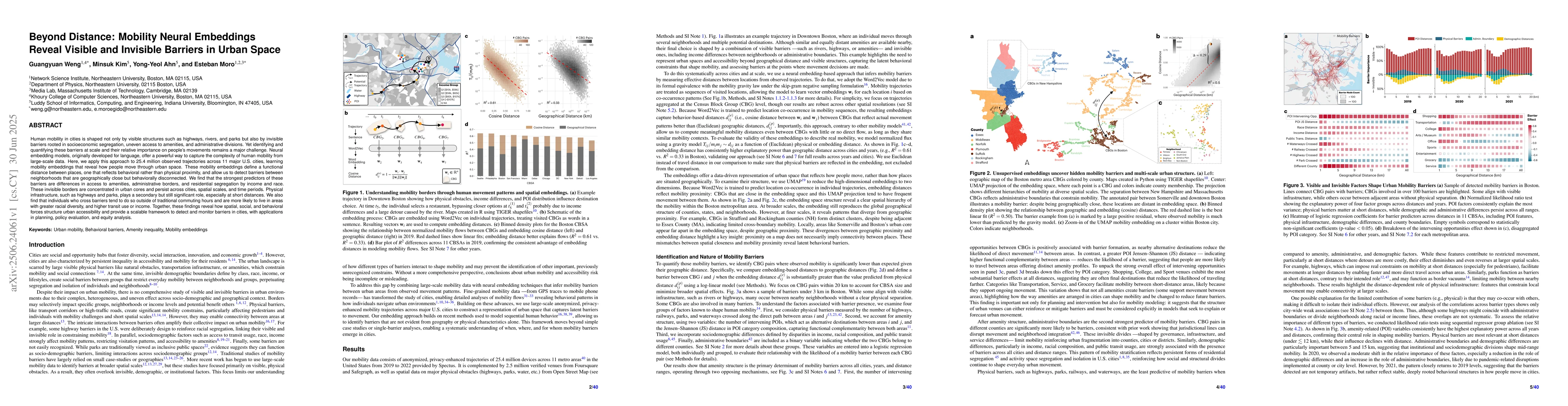 This work distinguishes itself by integrating neural embedding techniques with mobility data analysis, revealing invisible urban barriers and their socio-economic underpinnings, which previous research has not comprehensively addressed.