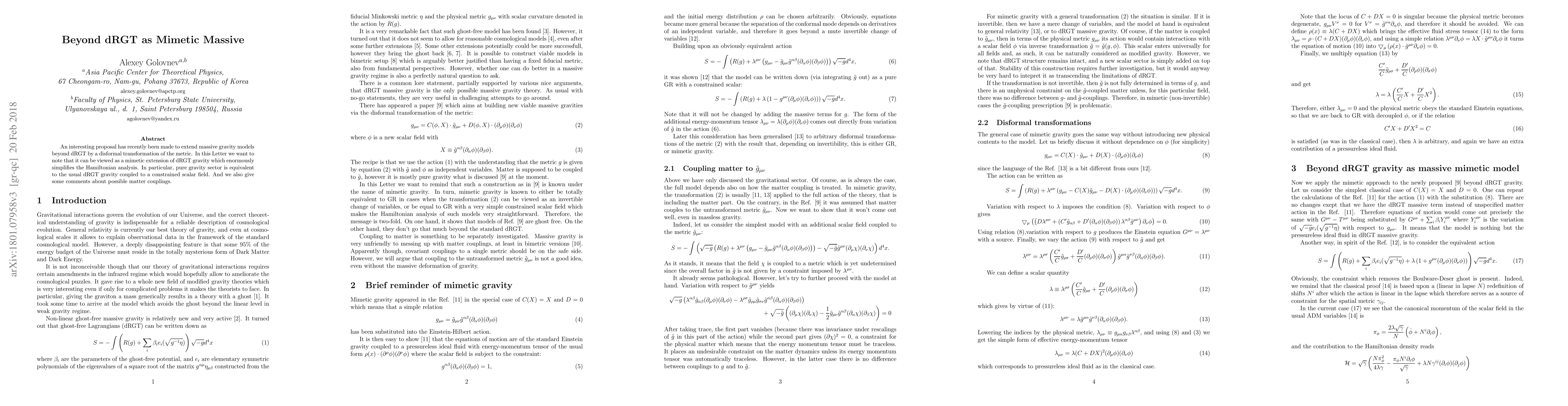 This paper proposes an extension of massive gravity models beyond dRGT through a disformal metric transformation, which simplifies the Hamiltonian analysis and reveals a mimetic relationship to the dRGT model, coupled with a constrained scalar field. It also discusses potential matter couplings.