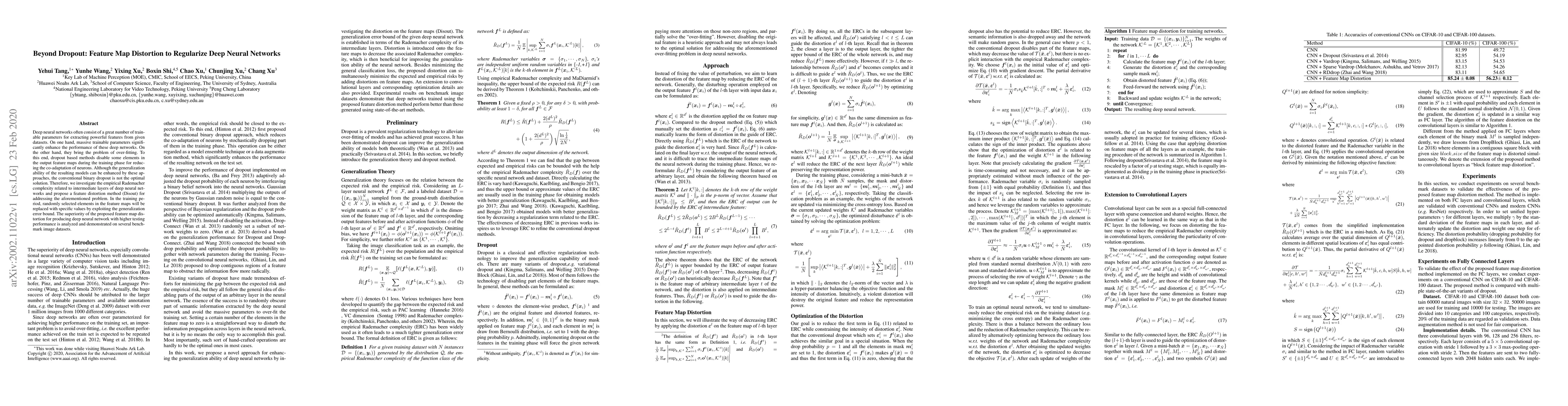 This paper proposes a feature distortion method (Disout) to regularize deep neural networks by replacing randomly selected elements in feature maps with specific values during training, aiming to reduce overfitting and improve generalization. The method is shown to enhance testing performance on benchmark image datasets.