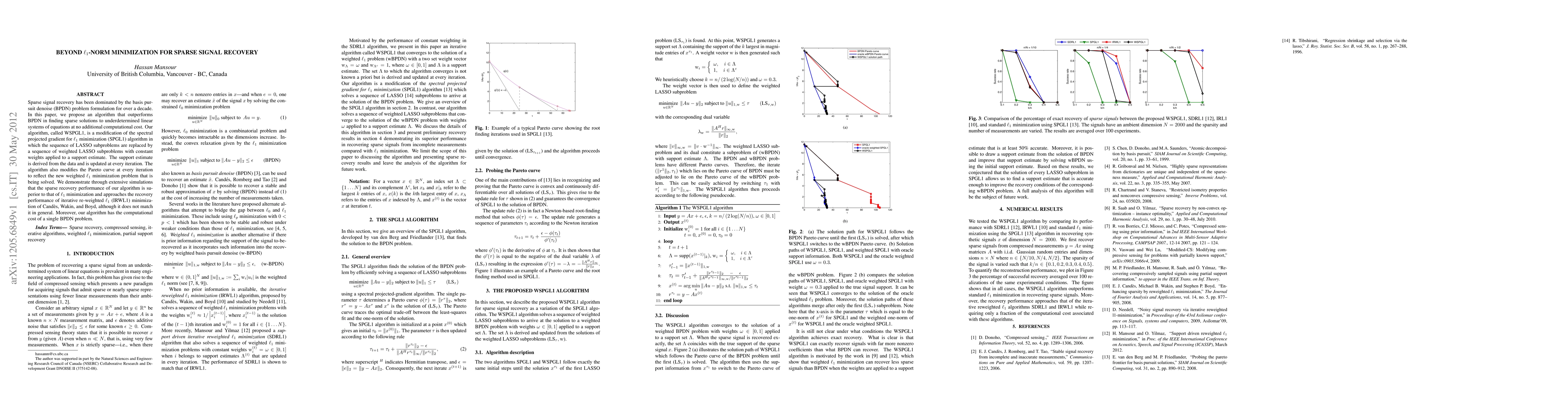 This research is important because it provides a novel approach to sparse signal recovery, improving upon existing methods in terms of performance and efficiency.