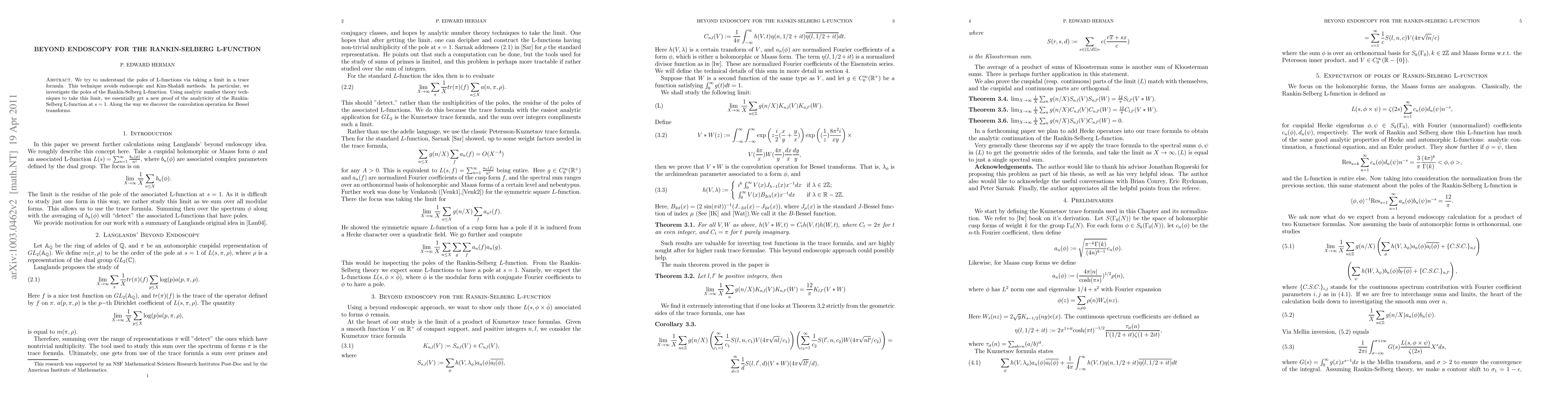 We try to understand the poles of L-functions via taking a limit in a trace formula. This technique avoids endoscopic and Kim-Shahidi methods. In particular, we investigate the poles of the Rankin-Selberg L-function. Using analytic number theory techniques to take this limit, we essentially get a new proof of the analyticity of the Rankin-Selberg L-function at $s=1.$ Along the way we discover the convolution operation for Bessel transforms.
