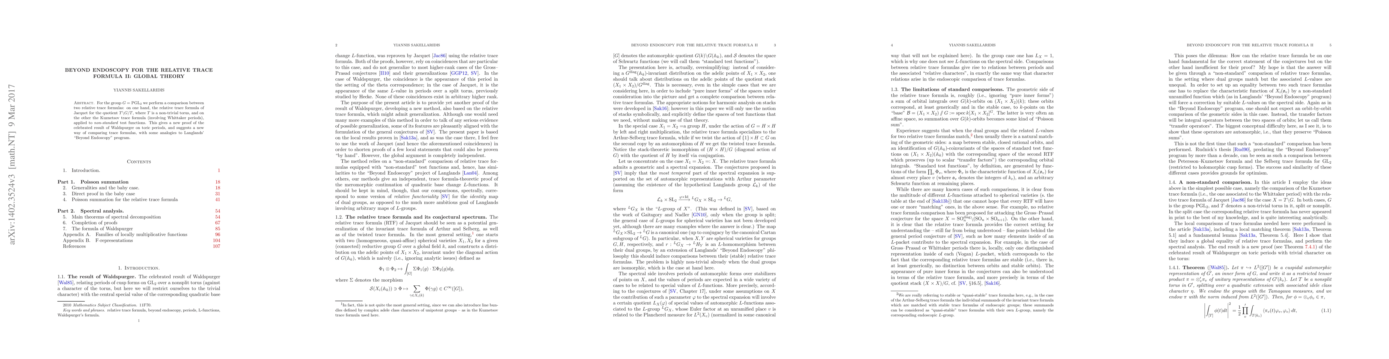For the group G=PGL_2 we perform a comparison between two relative trace formulas: on one hand, the relative trace formula of Jacquet for the quotient T\backslash G/T, where T is a non-trivial torus, and on the other the Kuznetsov trace formula (involving Whittaker periods), applied to non-standard test functions. This gives a new proof of the celebrated result of Waldspurger on toric periods, and suggests a new way of comparing trace formulas, with some analogies to Langlands' "Beyond Endoscopy" program.
