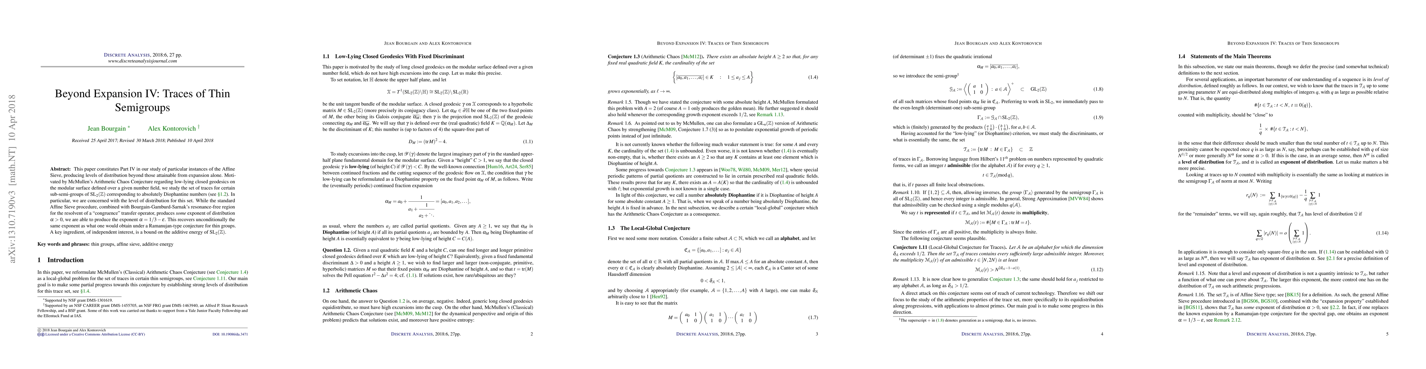 We continue our study of particular instances of the Affine Sieve, producing levels of distribution beyond those attainable from expansion alone. Motivated by McMullen's Arithmetic Chaos Conjecture regarding low-lying closed geodesics on the modular surface defined over a given number field, we study the set of traces for certain sub-semi-groups of SL2(Z) corresponding to absolutely Diophantine numbers. In particular, we are concerned with the level of distribution for this set. While the standard Affine Sieve procedure, combined with Bourgain-Gamburd-Sarnak's resonance-free region for the resolvent of a "congruence" transfer operator, produces some exponent of distribution alpha > 0, we are able to produce the exponent alpha < 1/3. This recovers unconditionally the same exponent as what one would obtain under a Ramanujan-type conjecture for thin groups. A key ingredient, of independent interest, is a bound on the additive energy of SL2(Z).