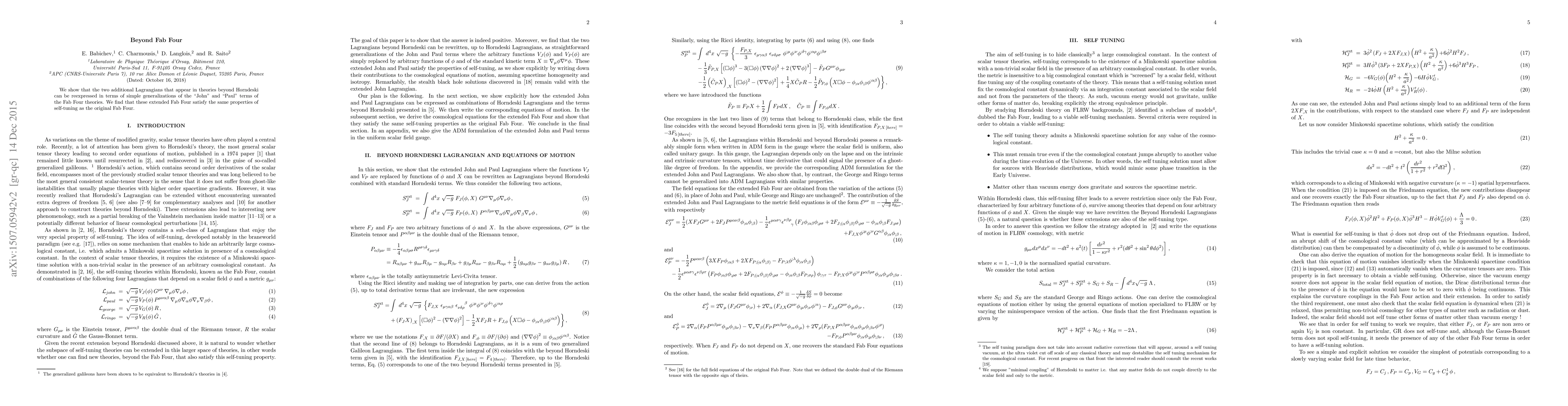 This paper demonstrates that additional Lagrangians in theories beyond Horndeski can be reformulated as generalized versions of the "John" and "Paul" terms from the Fab Four framework, maintaining the self-tuning properties of the original Fab Four.