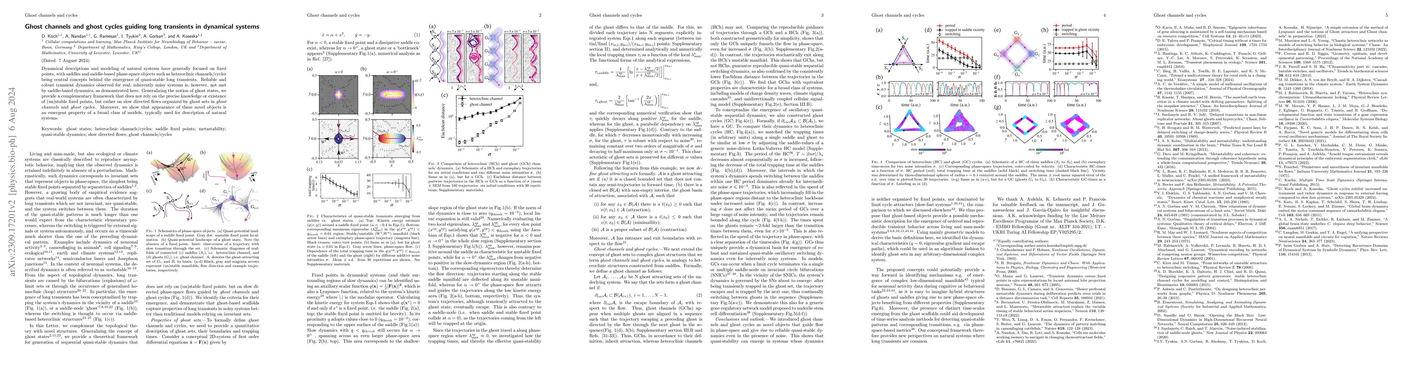 This paper proposes a new framework for understanding quasi-stable dynamics in natural systems beyond traditional fixed points, introducing "ghost channels" and "ghost cycles" that arise from slow flows on ghost manifolds, offering a more robust explanation for observed transient dynamics in noisy systems.