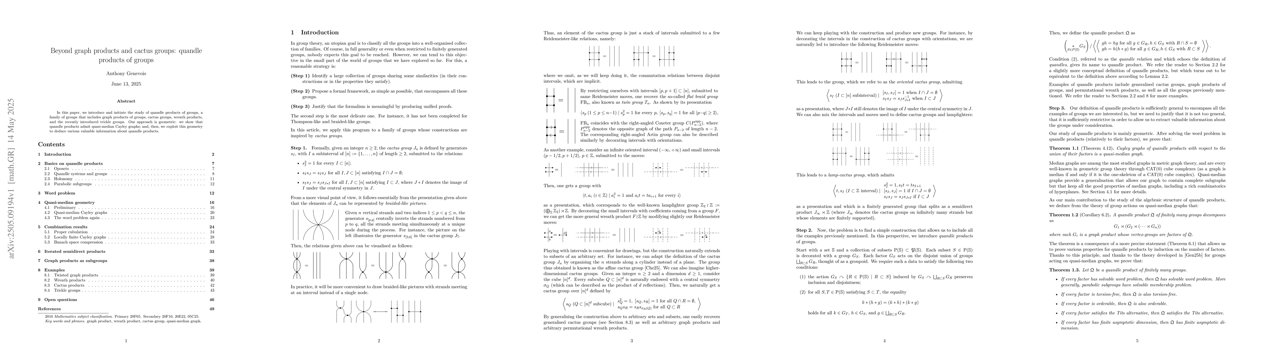 The discovery and analysis of quandle products of groups, emphasizing their geometric properties via quasi-median Cayley graphs.