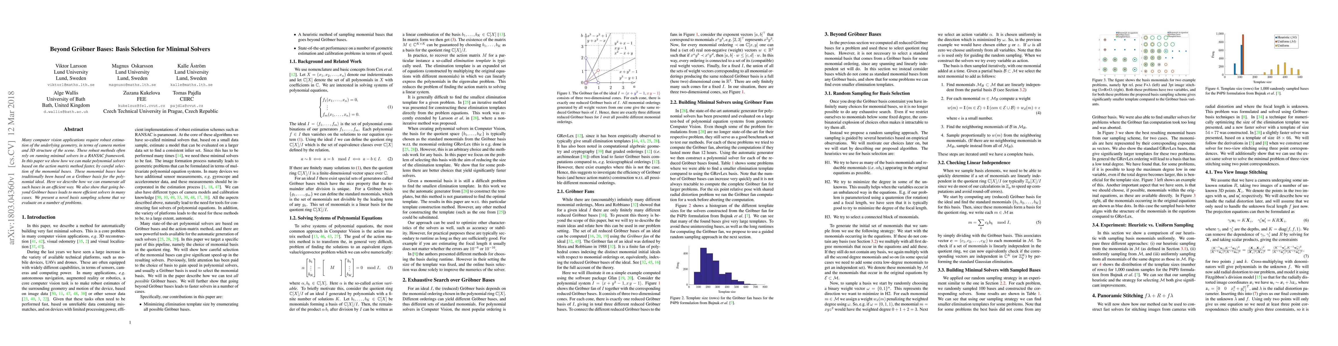 This paper explores efficient basis selection for minimal solvers in computer vision, moving beyond traditional Gr\"obner bases to improve polynomial solvers. It proposes a novel basis sampling scheme for enumerating monomial bases and demonstrates enhanced performance in various applications.