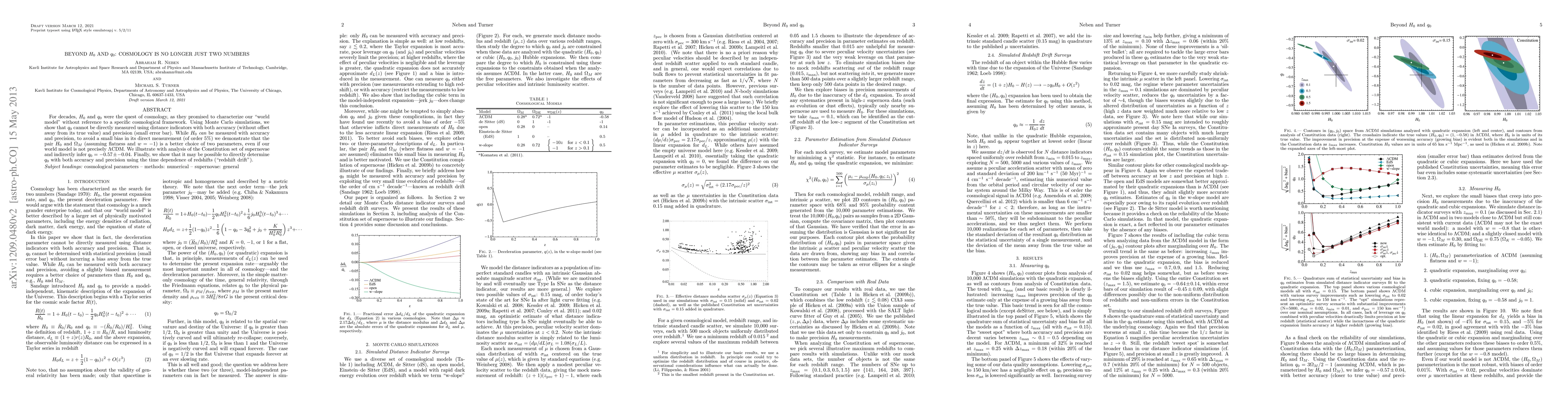 For decades, H_0 and q_0 were the quest of cosmology, as they promised to characterize our "world model" without reference to a specific cosmological framework. Using Monte Carlo simulations, we show that q_0 cannot be directly measured using distance indicators with both accuracy (without offset away from its true value) and precision (small error bar). While H_0 can be measured with accuracy and precision, to avoid a small bias in its direct measurement (of order 5%) we demonstrate that the pair H_0 and Omega_M (assuming flatness and w = -1) is a better choice of two parameters, even if our world model is not precisely LambdaCDM. We illustrate with analysis of the Constitution set of supernovae and indirectly infer q_0 = -0.57+/-0.04. Finally, we show that it may be possible to directly determine q_0 with both accuracy and precision using the time dependence of redshifts ("redshift drift").