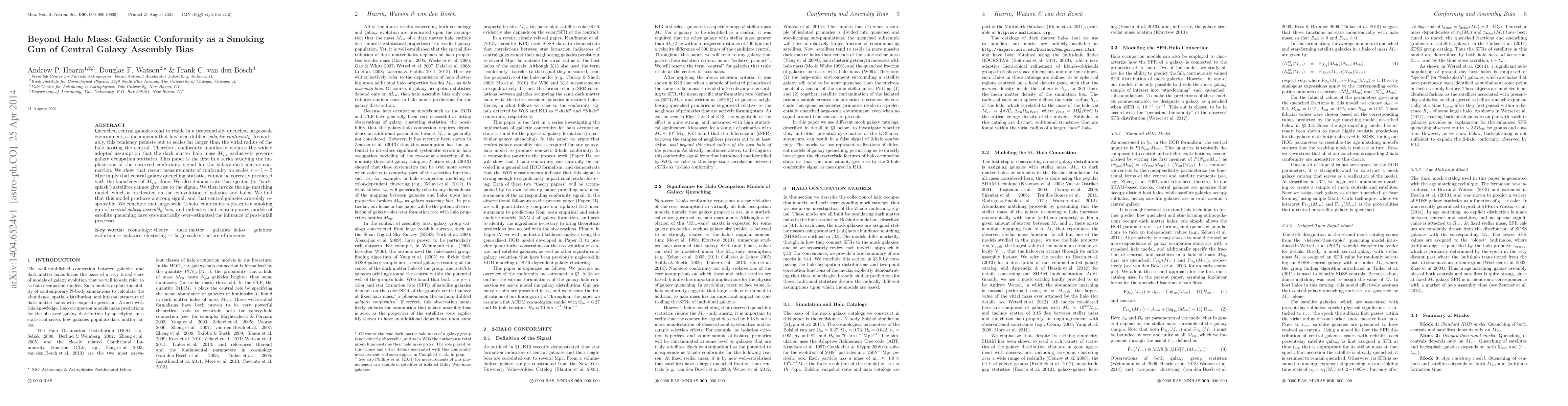 This paper demonstrates that galactic conformity, where quenched central galaxies reside in quenched environments beyond the virial radius, challenges the notion that dark matter halo mass alone determines galaxy properties. It concludes that central galaxy assembly bias, rather than satellite quenching, is the key driver of this phenomenon.