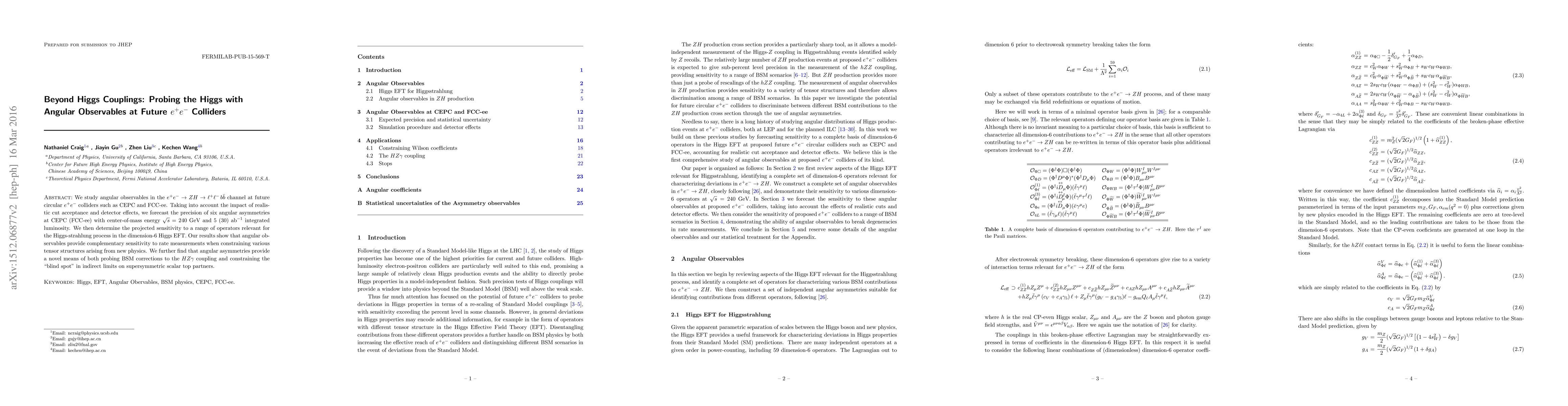 We study angular observables in the $e^+e^-\to Z H\to \ell^+ \ell^-\,b\bar{b}$ channel at future circular $e^+ e^-$ colliders such as CEPC and FCC-ee. Taking into account the impact of realistic cut acceptance and detector effects, we forecast the precision of six angular asymmetries at CEPC (FCC-ee) with center-of-mass energy $\sqrt{s} =$ 240 GeV and 5 (30) ${\rm ab}^{-1}$ integrated luminosity. We then determine the projected sensitivity to a range of operators relevant for the Higgs-strahlung process in the dimension-6 Higgs EFT. Our results show that angular observables provide complementary sensitivity to rate measurements when constraining various tensor structures arising from new physics. We further find that angular asymmetries provide a novel means of both probing BSM corrections to the $H Z \gamma$ coupling and constraining the "blind spot" in indirect limits on supersymmetric scalar top partners.