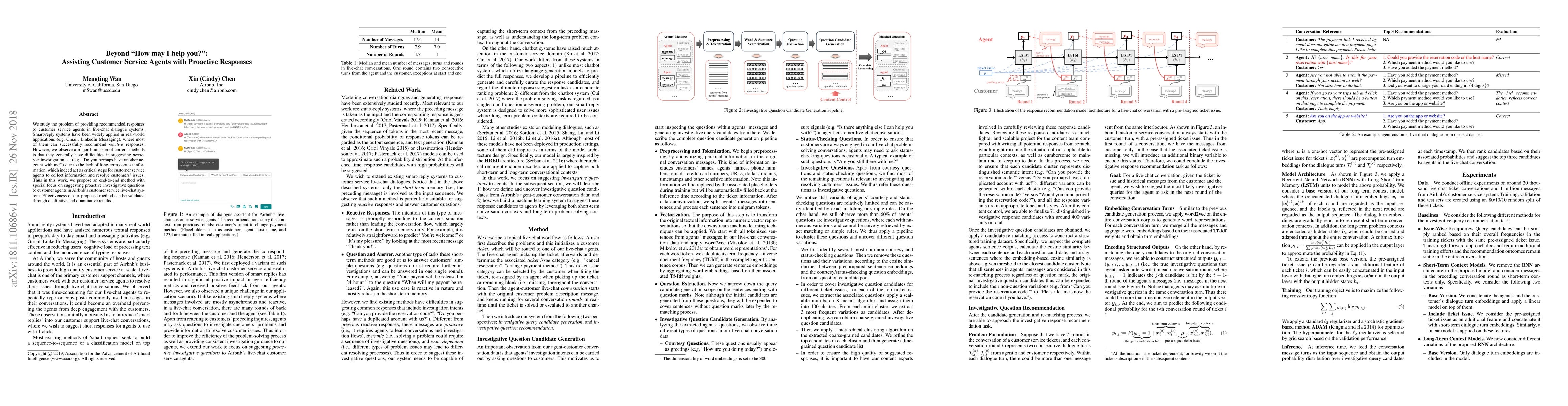 We study the problem of providing recommended responses to customer service agents in live-chat dialogue systems. Smart-reply systems have been widely applied in real-world applications (e.g. Gmail, LinkedIn Messaging), where most of them can successfully recommend reactive responses. However, we observe a major limitation of current methods is that they generally have difficulties in suggesting proactive investigation act (e.g. "Do you perhaps have another account with us?") due to the lack of long-term context information, which indeed act as critical steps for customer service agents to collect information and resolve customers' issues. Thus in this work, we propose an end-to-end method with special focus on suggesting proactive investigative questions to customer agents in Airbnb's customer service live-chat system. Effectiveness of our proposed method can be validated through qualitative and quantitative results.