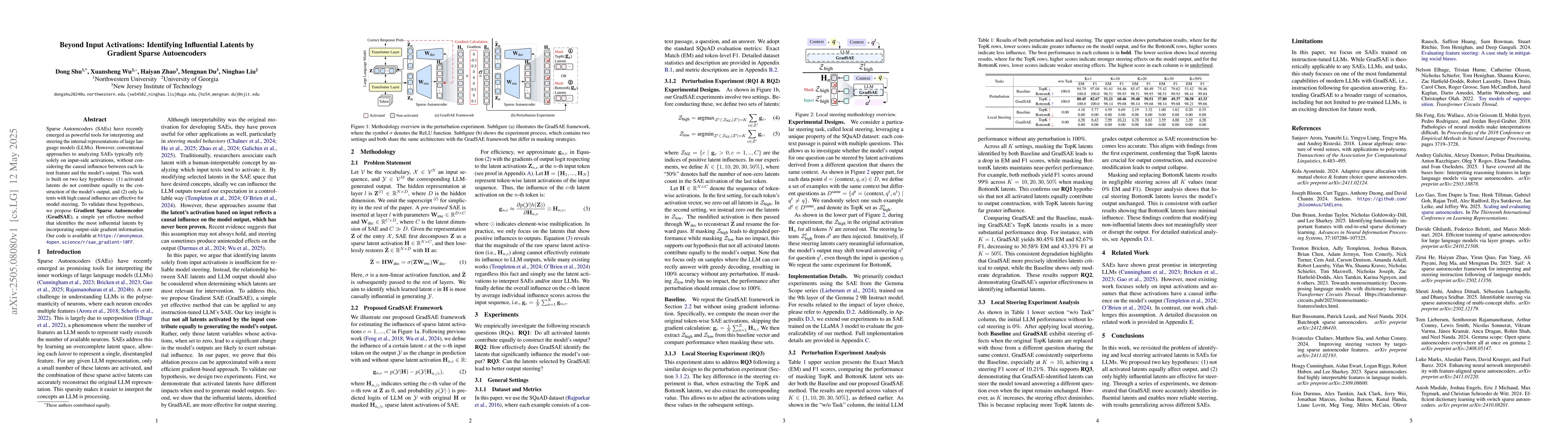 Researchers propose a method to identify influential latents in language models using gradient sparse autoencoders, which balances input-side activations with output-side gradient information to pinpoint the most effective latent features for steering the model's output.