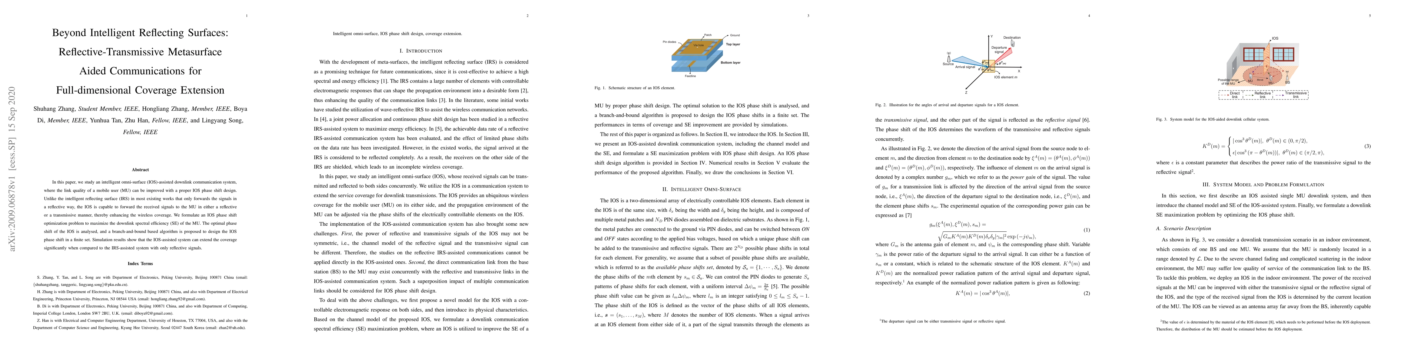 This paper proposes an intelligent omni-surface (IOS)-assisted communication system that enhances wireless coverage by allowing signals to be reflected or transmitted directly to a mobile user. An optimization problem is formulated to maximize downlink spectral efficiency, and a branch-and-bound algorithm is developed to determine the optimal phase shift, demonstrating significant coverage extension compared to systems using only reflective surfaces.
